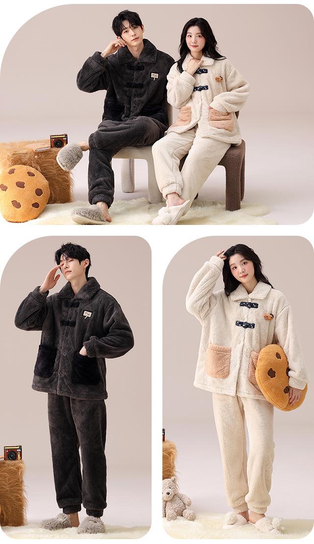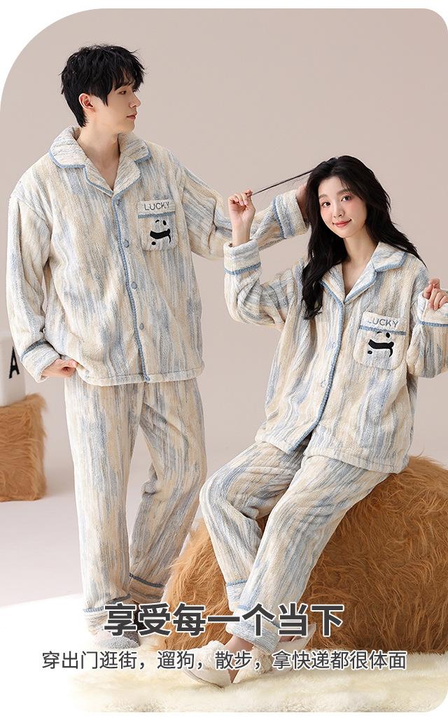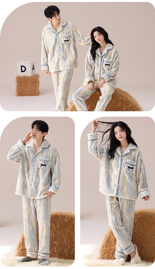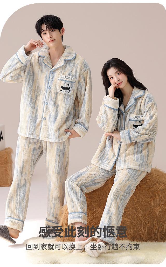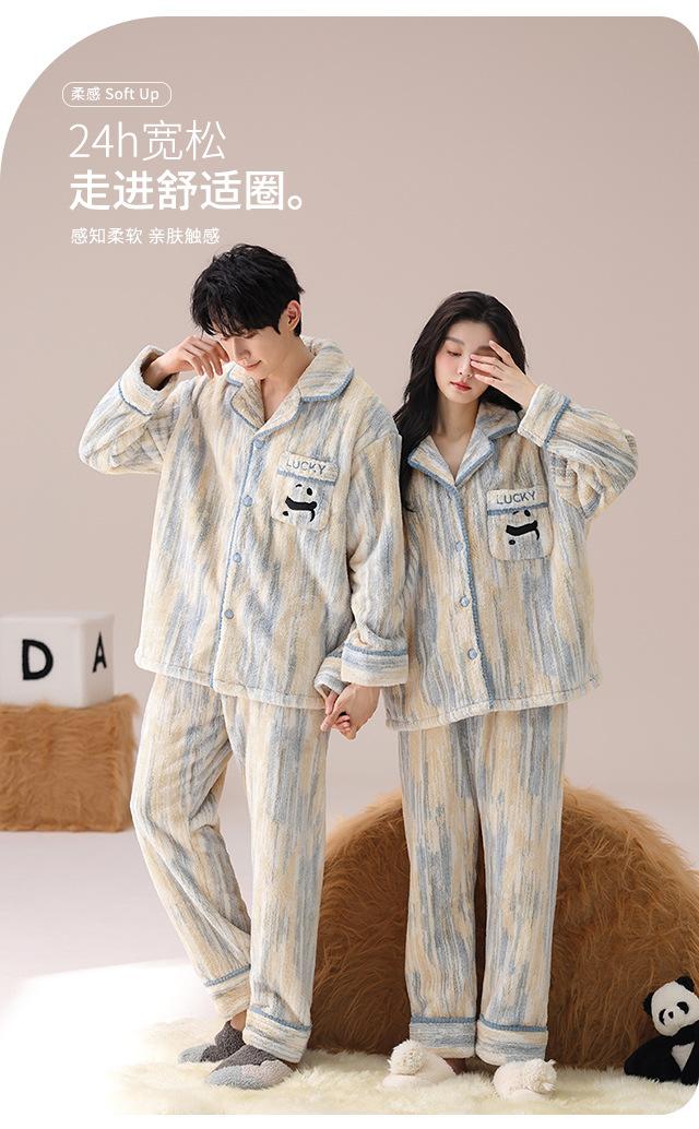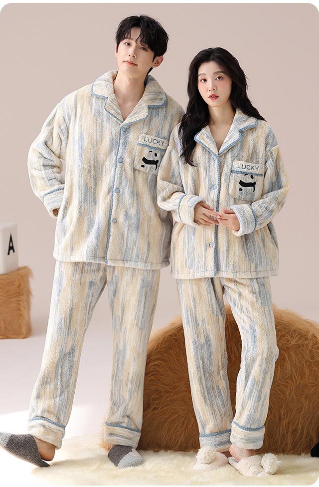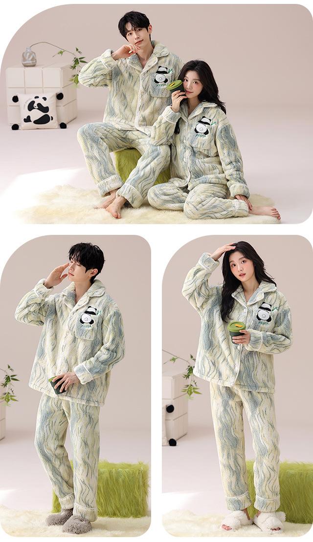 Novos pijamas de casal de lã coral outono e inverno com forro de lã espessado roupa externa desenho animado panda roupas para casa cardigan terno