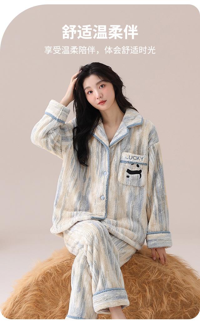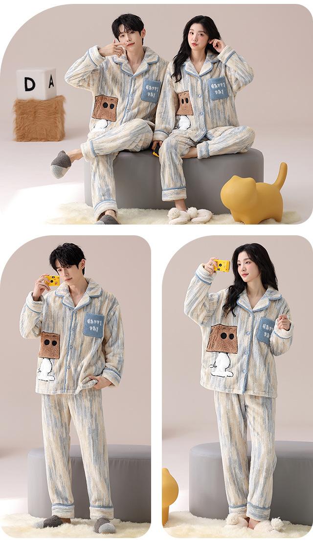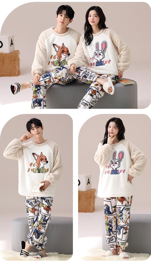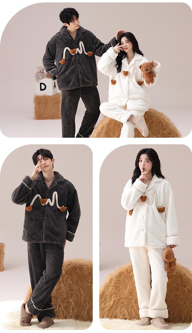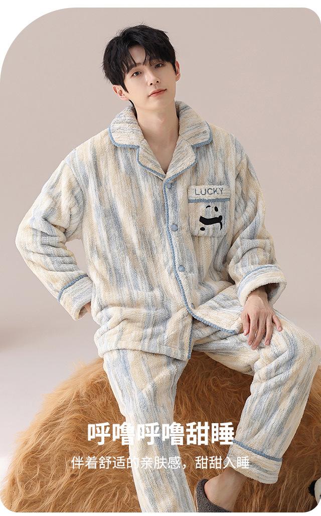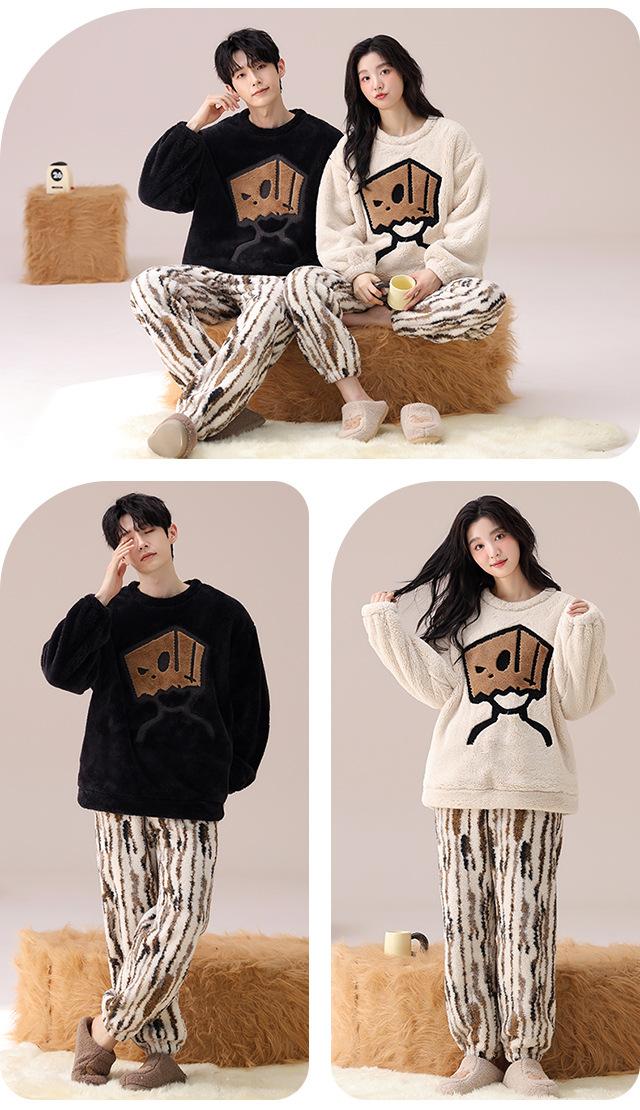 Novos pijamas de casal de lã coral outono e inverno com forro de lã espessado roupa externa desenho animado panda roupas para casa cardigan terno