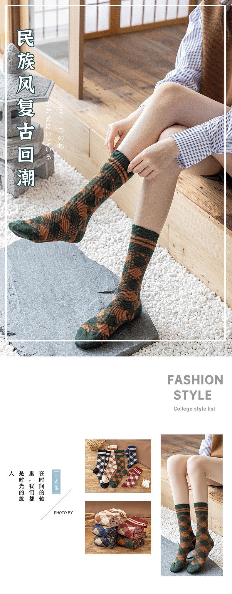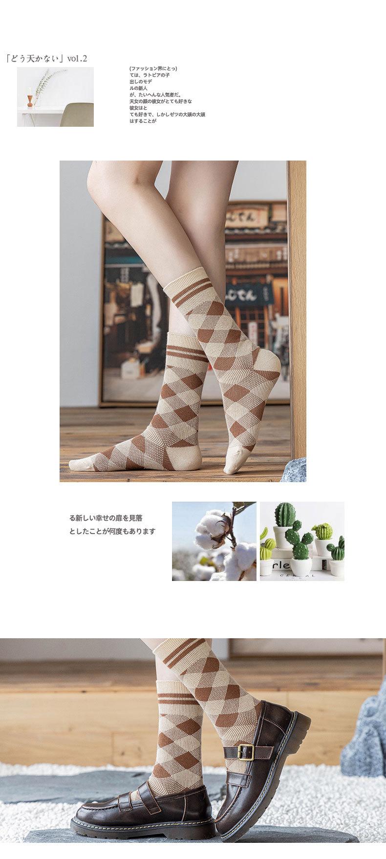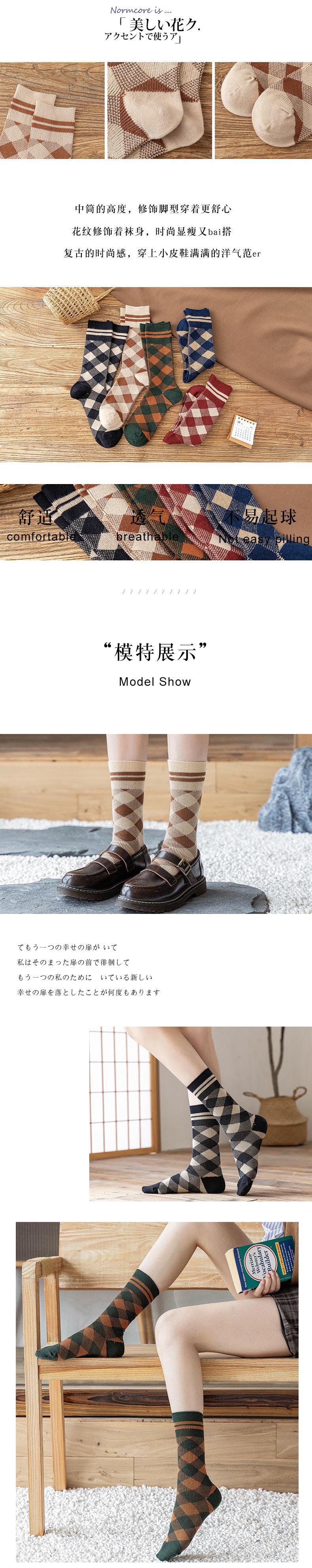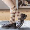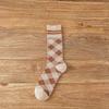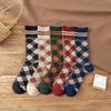 Meias Femininas Outono e Inverno Retrô Quentes Meias Femininas Japonesas Modernas Casuais Meias Xadrez de Cano Médio