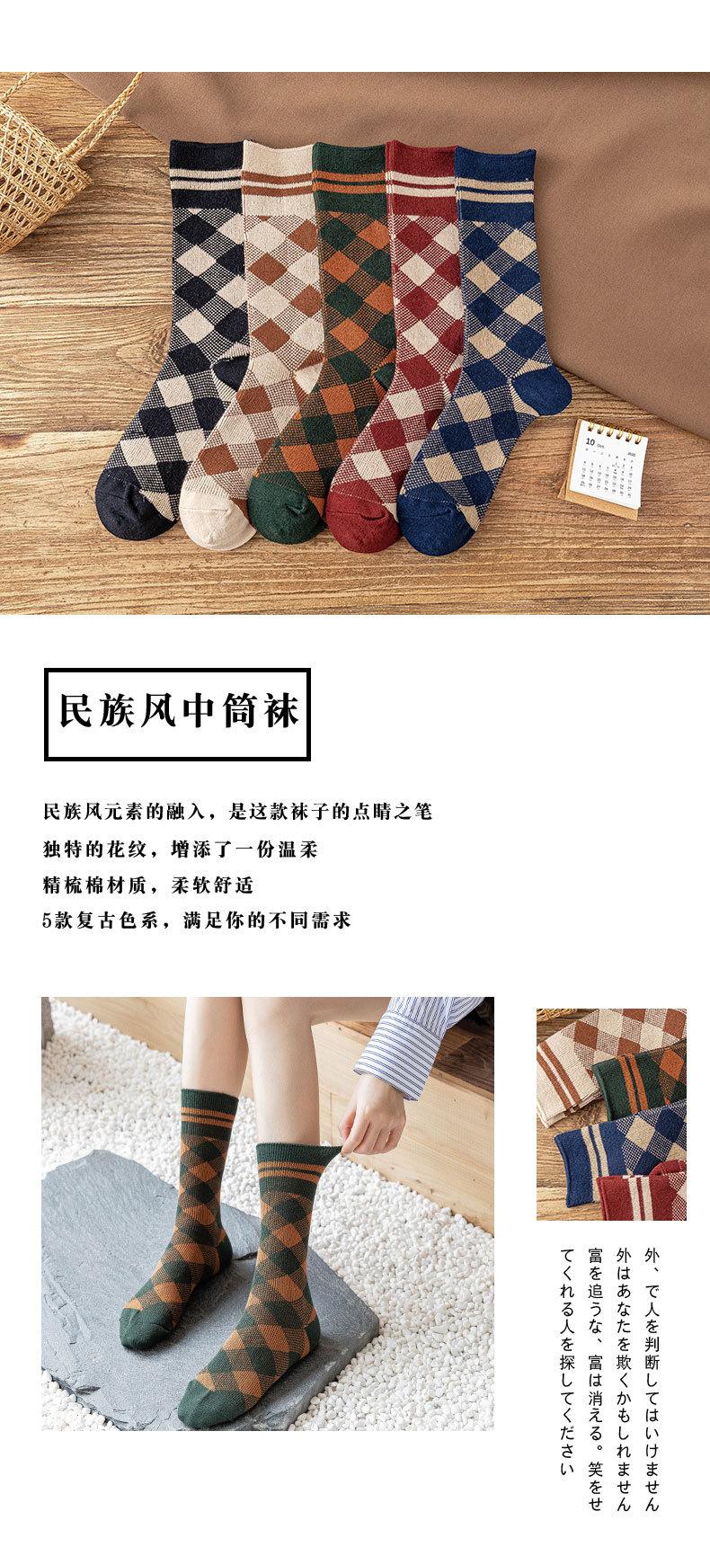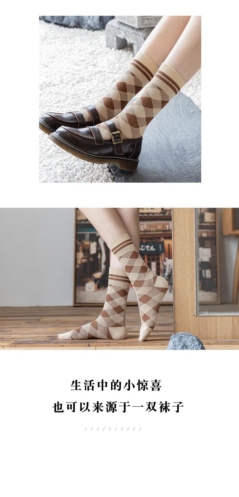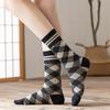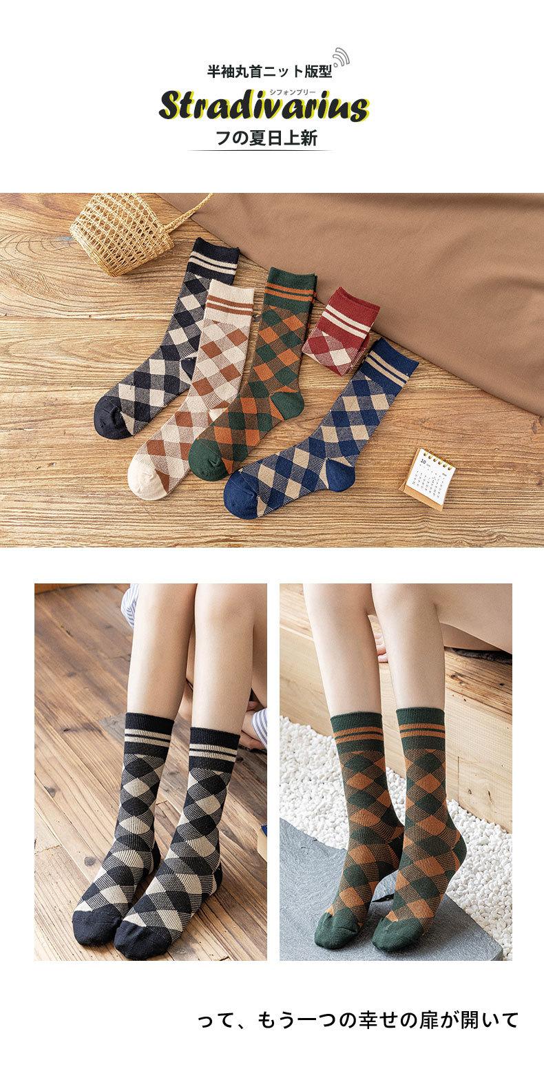 Meias Femininas Outono e Inverno Retrô Quentes Meias Femininas Japonesas Modernas Casuais Meias Xadrez de Cano Médio