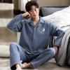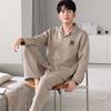 Winter Island Velvet Masculino Pijama Cardigan Manga Comprida Simples Exterior Desgaste Cor Sólida Quente Roupas de Casa do Pai com Lapela