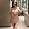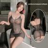 Lingerie Sexy Spice Girls Decote em V Decote Baixo Alça Pequeno Vestido Preto Apertado Transparente Brilhante Diamante Vestido Grátis 8553
