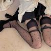 Meias de seda sexy e pura femininas Meias altas femininas Polo Dot Bow Coxa Preto Seda Sling Meia-calça integrada