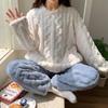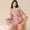 Pijamas Femininos Outono e Inverno Coral Fleece Manga Comprida Desenho animado terno Inverno Flanela forrado de lã Grosso Quente Roupas de Casa