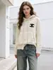 Suéter com Capuz Blusa Base Bordado de Carta Outono Inverno Color Block para Mulheres, Novo Estilo, Tricô Bolso Solto Preguiçoso