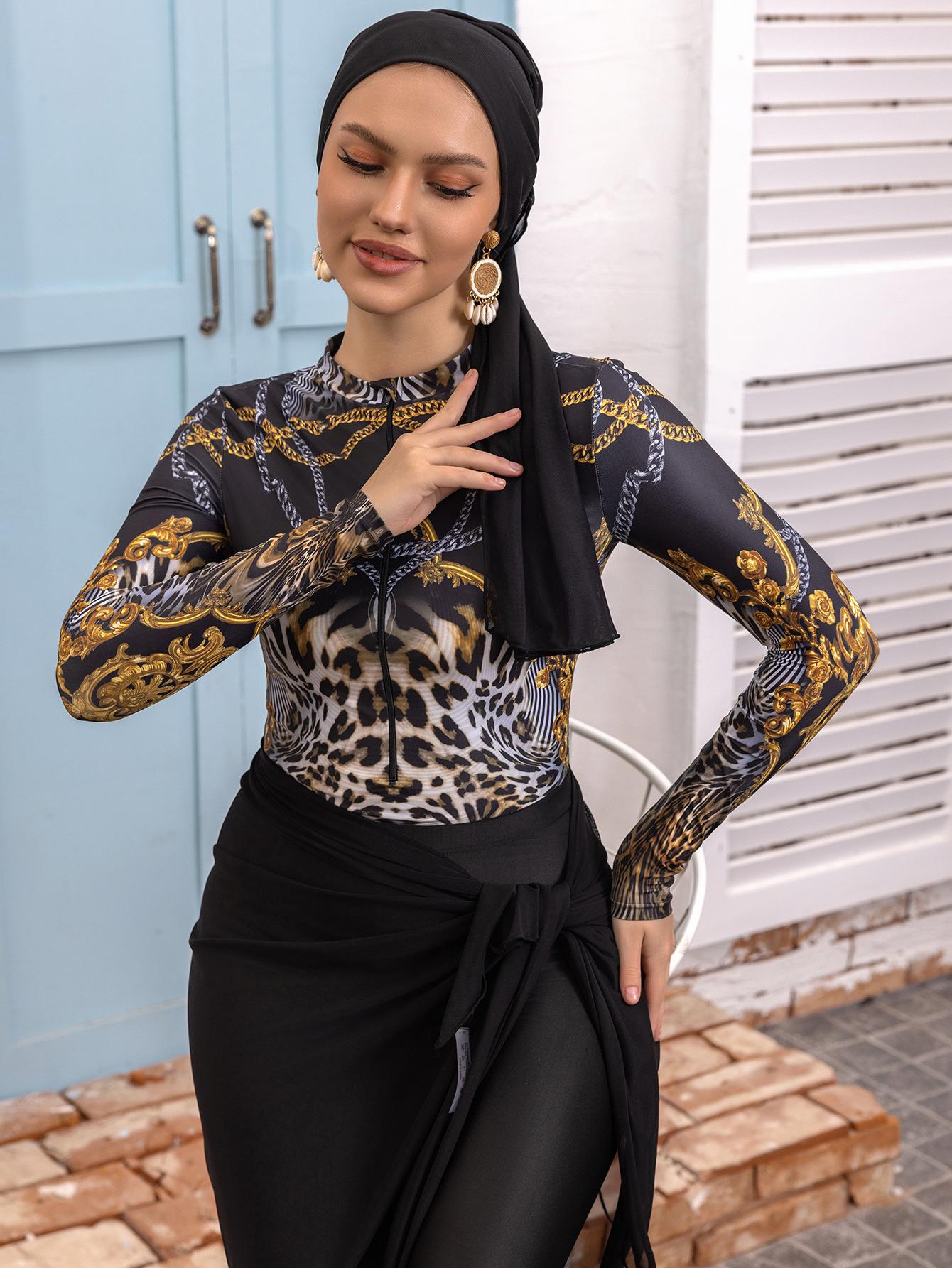 2024 Novos trajes de banho conservadores Oriente Médio Cor Muçulmano Manga Longa Calças À Prova de Sol Praia Maiô Três Peças Maiô