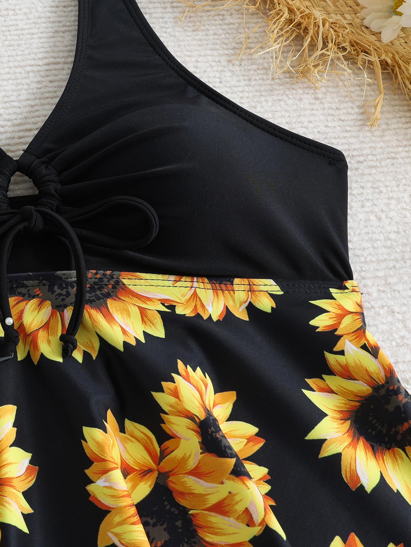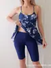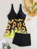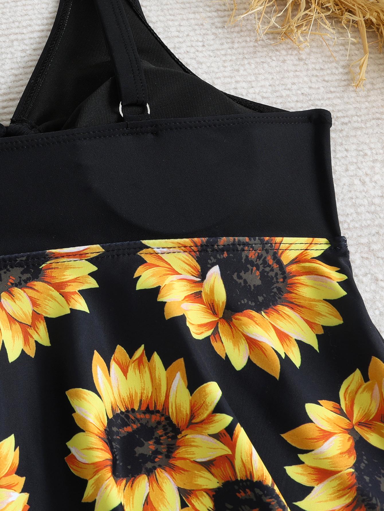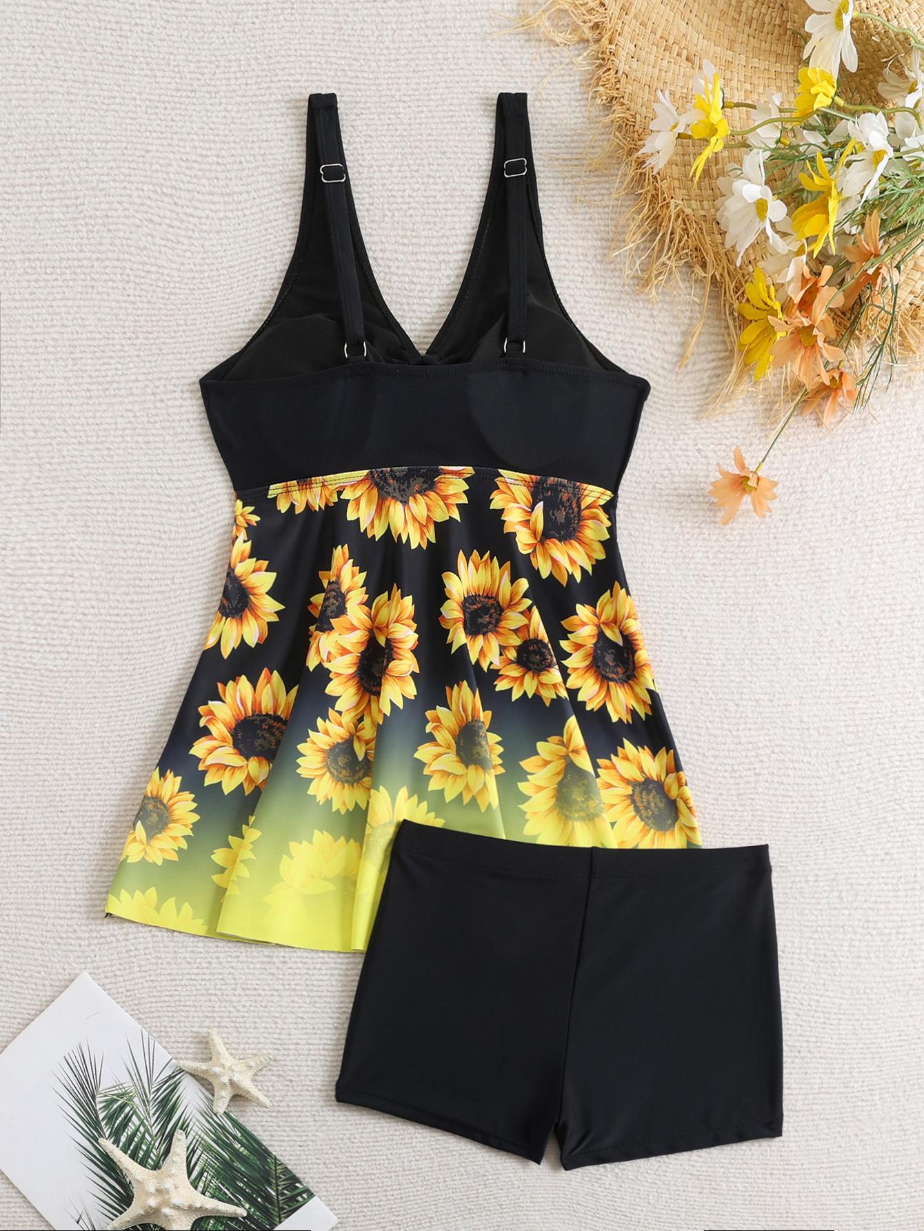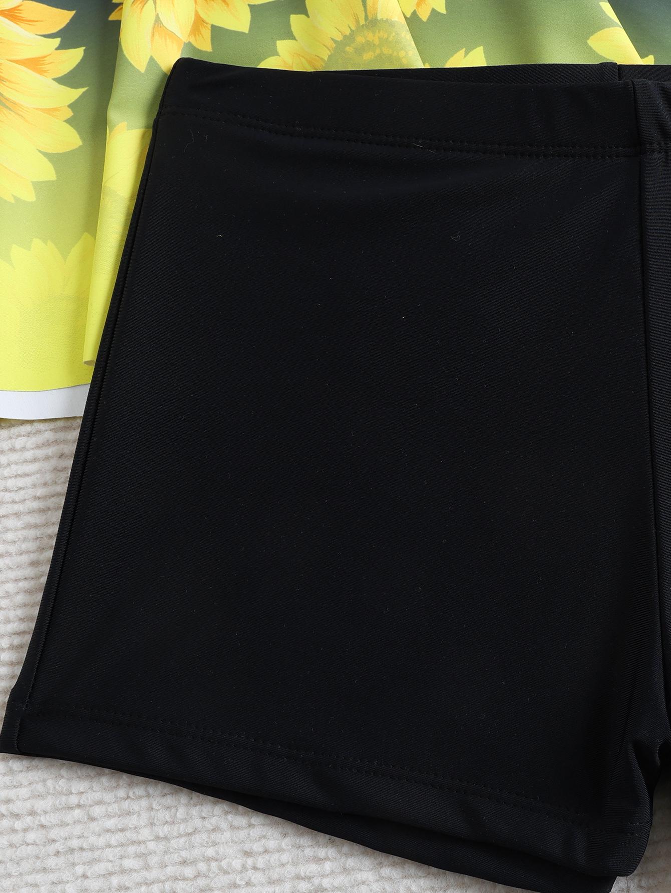 2024 [] Top Estampado Girassol com Saia e Shorts Boxer Biquíni de Duas Peças Estilo Esportivo