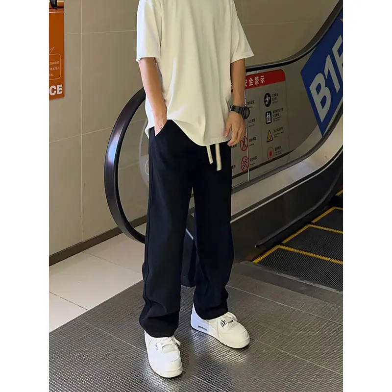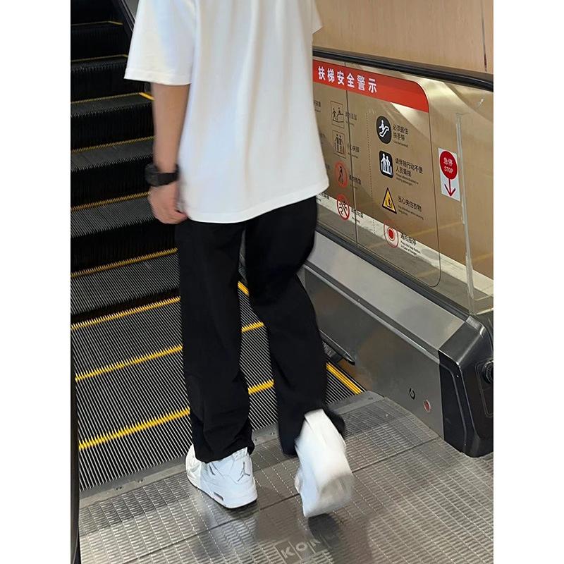 【solid color straight leg lightweight】black