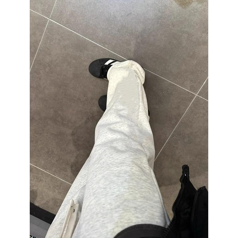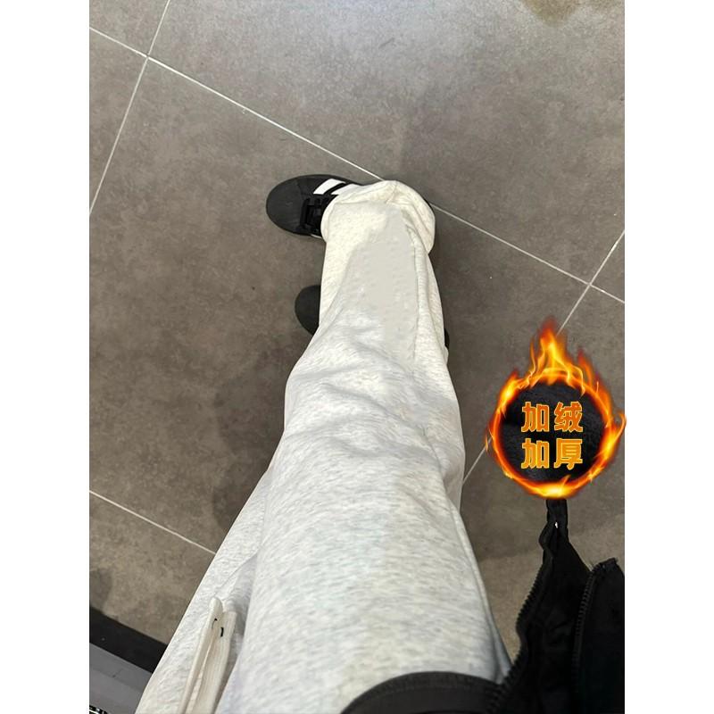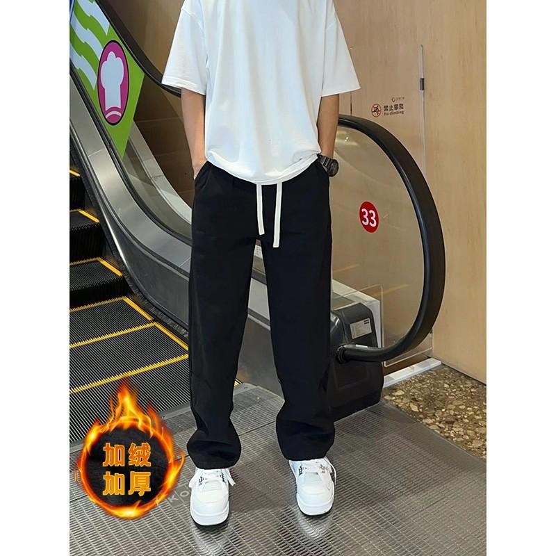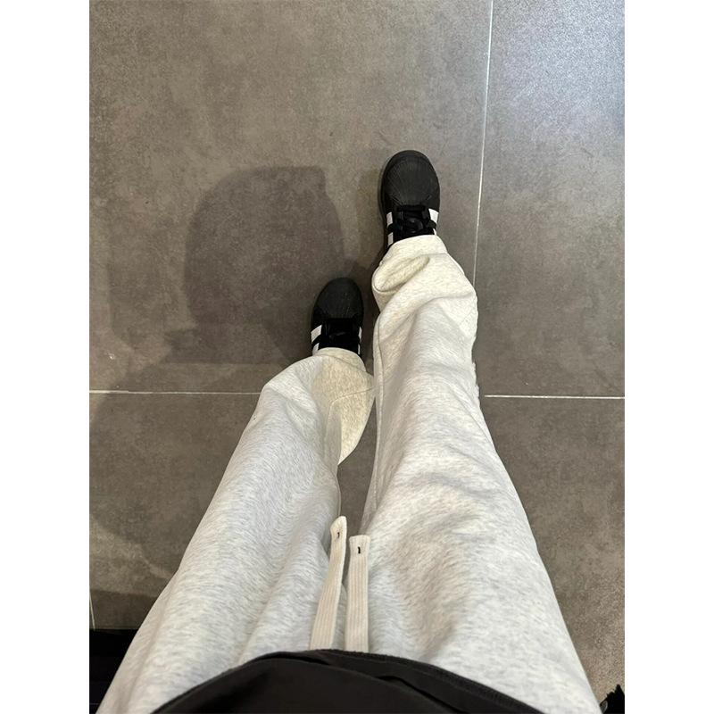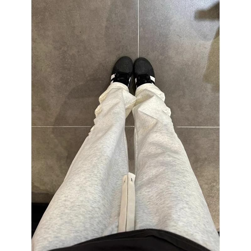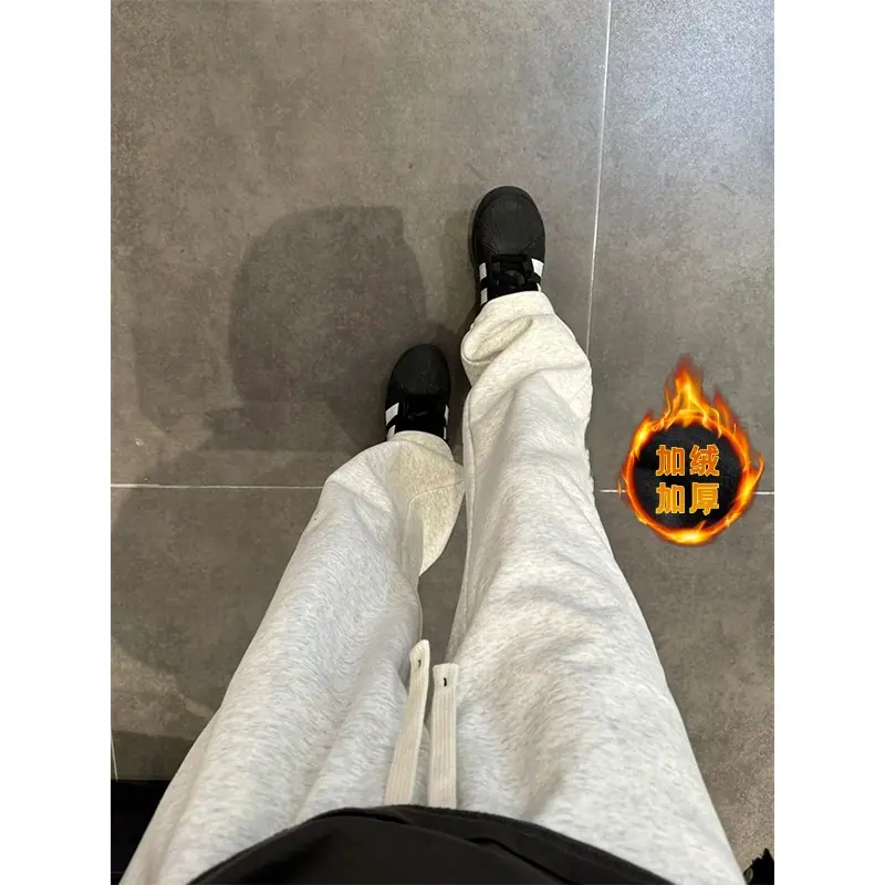 【solid color straight leg fleece-lined】off-white gray
