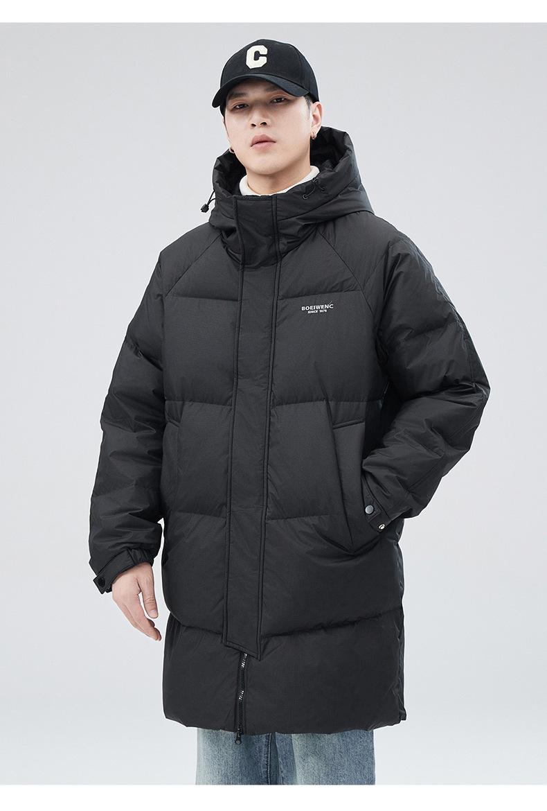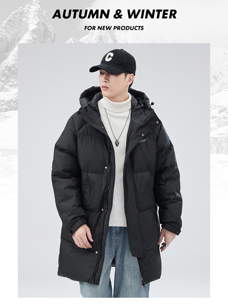 Casaco de inverno novo preto para casal, jaqueta masculina solta, plus size, espessada, comprimento médio, com capuz, casual, marca da moda