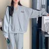 Conjunto Moletom Esportivo Casual Cinza para Mulheres 2024 Outono e Inverno Novo Estilo Estilo Preguiçoso Perna Larga Fino Conjunto Duas Peças
