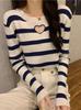 Camisa de base listrada feminina primavera e outono malha interna 2024 novo design suéter sensato ajuste fino top curto
