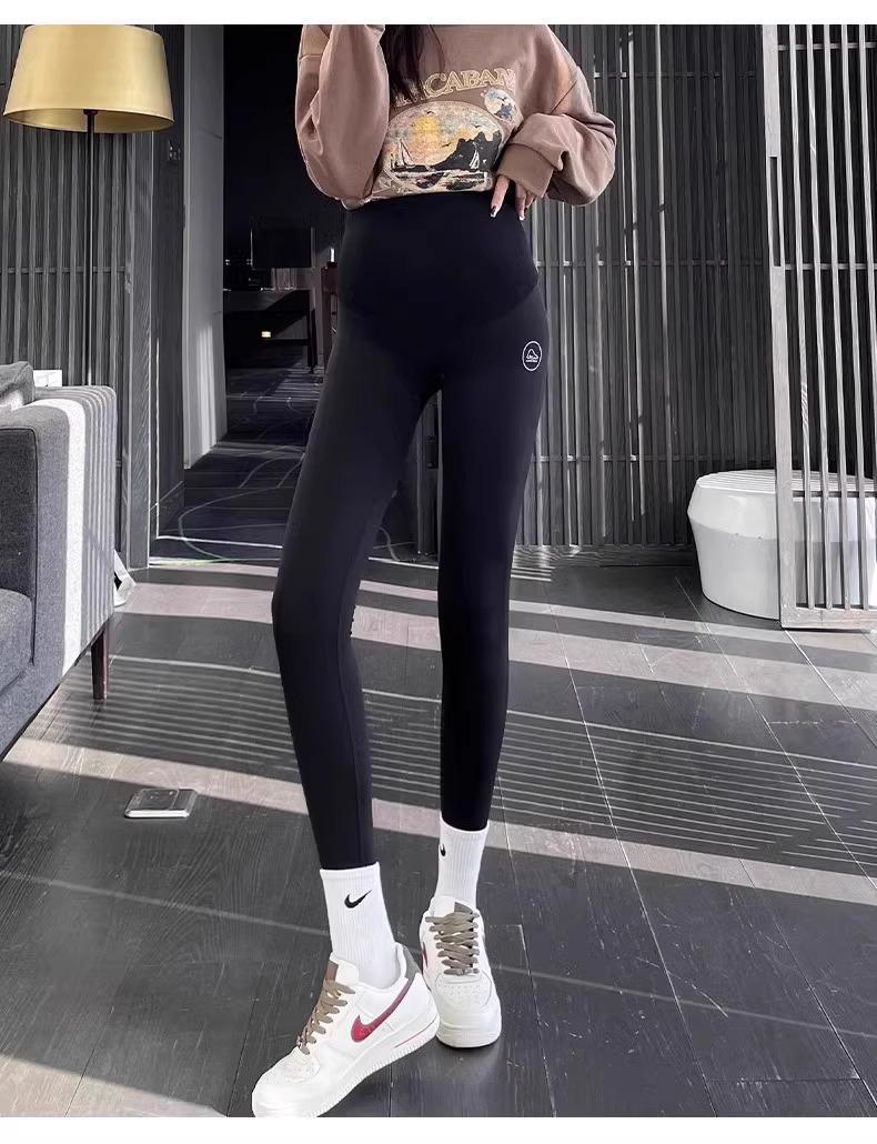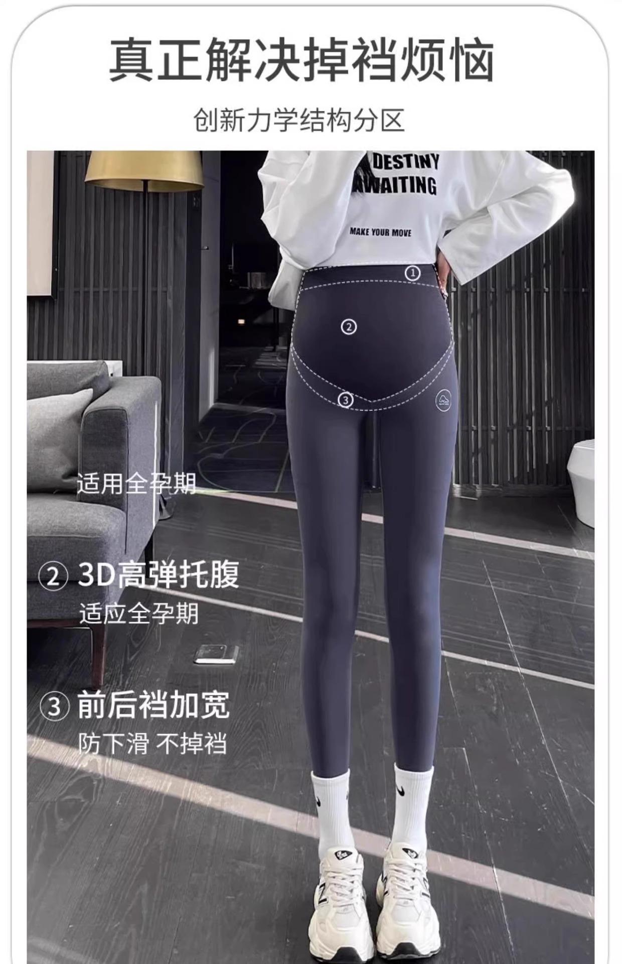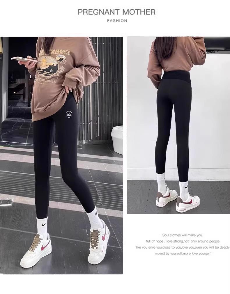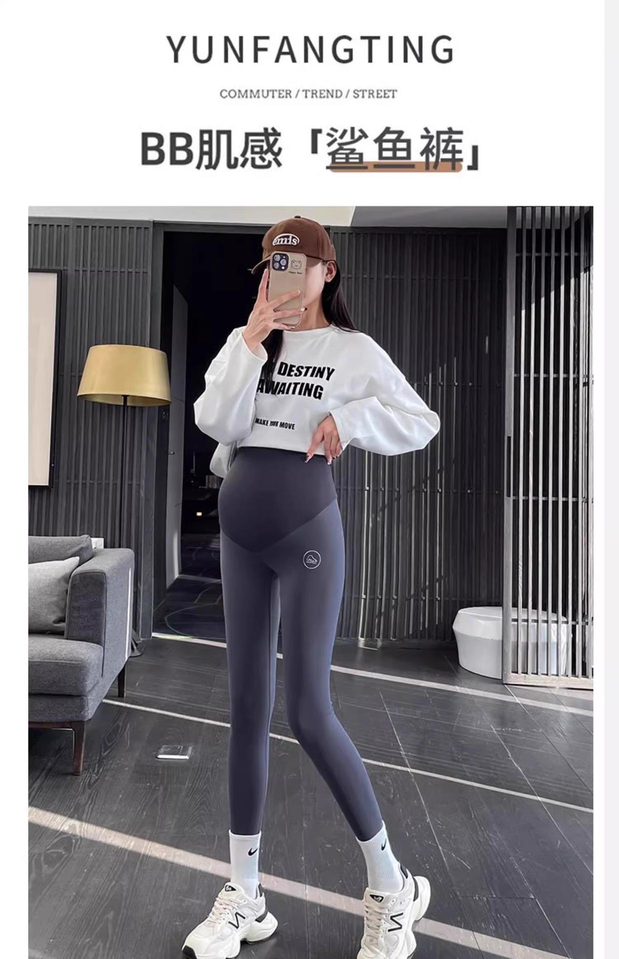 Calças de grávidas outono desgaste calças tubarão 2024 novo plus size calças de ioga barriga leggings outono e inverno forrado de lã