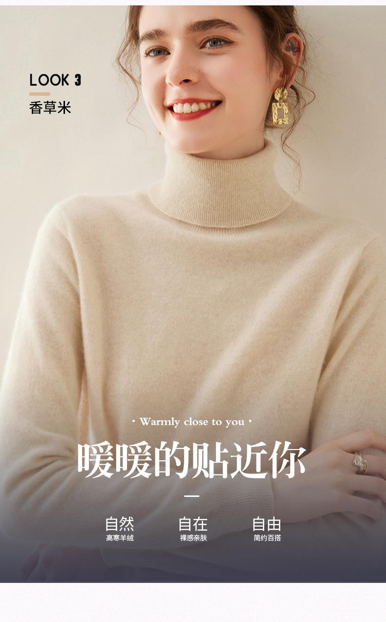 Cashmere Feminino Gola Alta Grossa Solta Moda Outono e Inverno Cor Sólida Pulôver All-match Malha Base Camisa