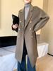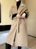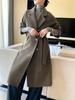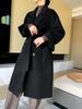 Casaco de Lã Dupla Face Novo Outono e Inverno para Mulheres, Estilo Longo com Cinto, 100% Lã, Casaco de Lã Acima do Joelho, Estilo Casual