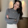 Suéter de cashmere sem costura, meia gola alta, feminino, outono e inverno, novo pulôver, suéter slim fit, malha, manga comprida, base de lã, camisa