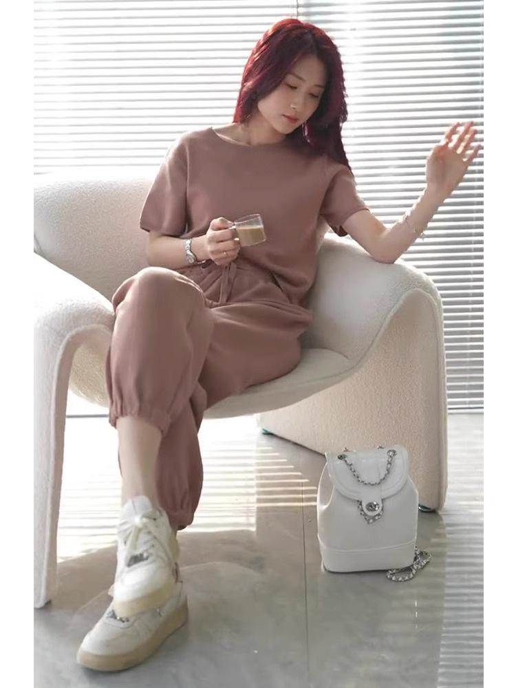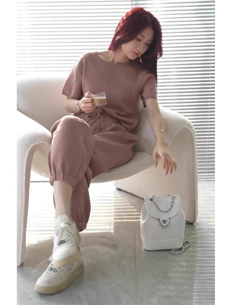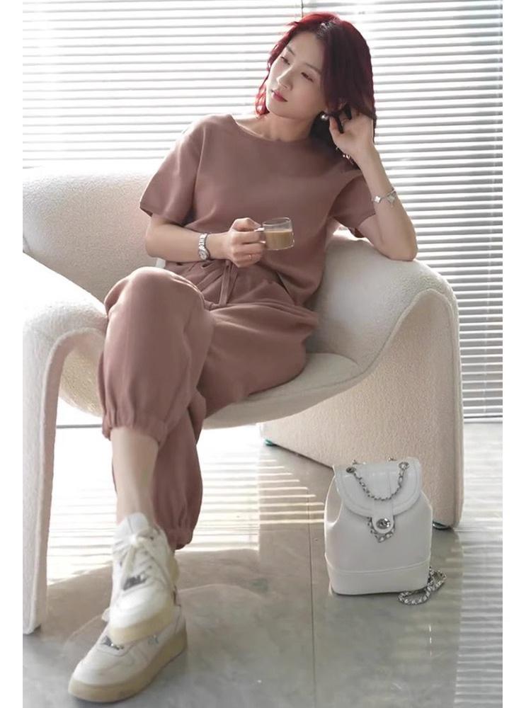 Calças da moda, traje esportivo, nova cor sólida, redutor de idade, pulôver casual, duas peças, roupa feminina