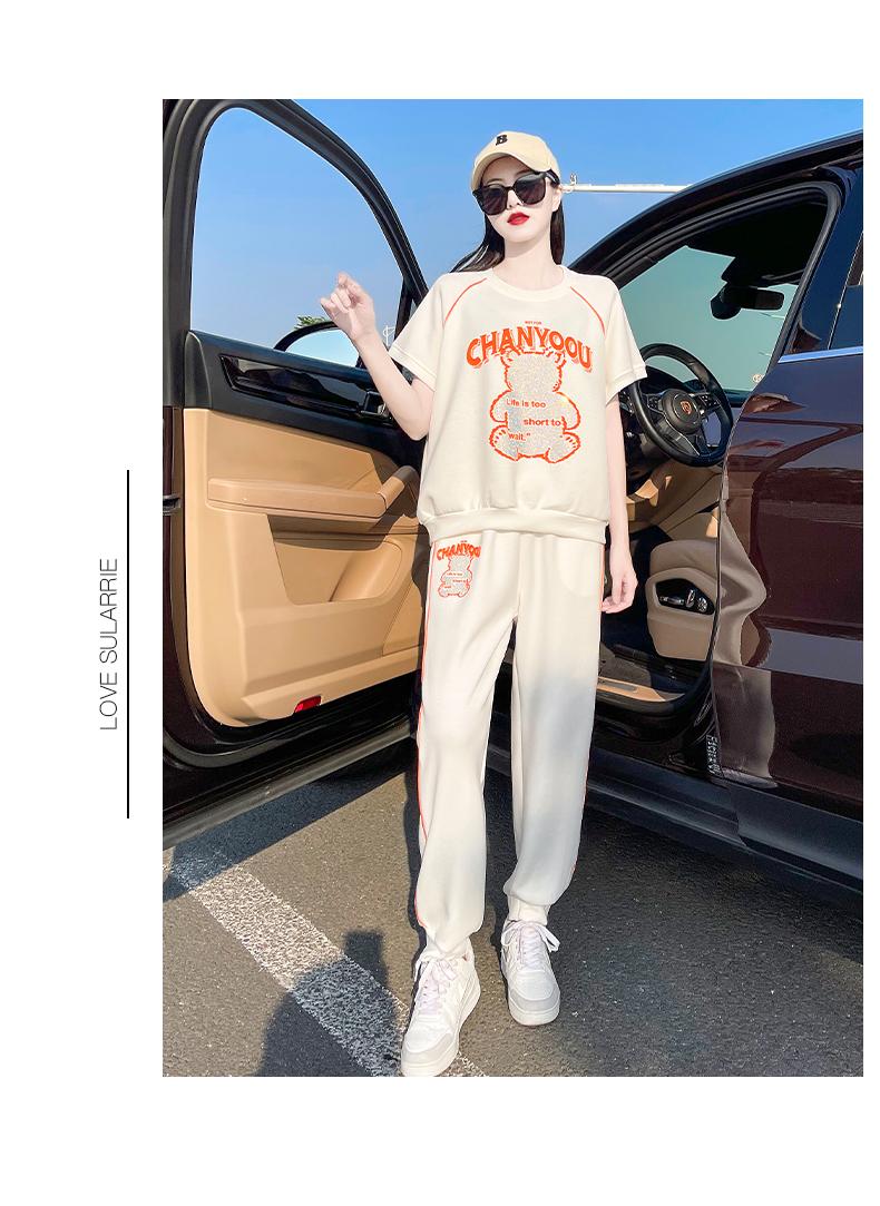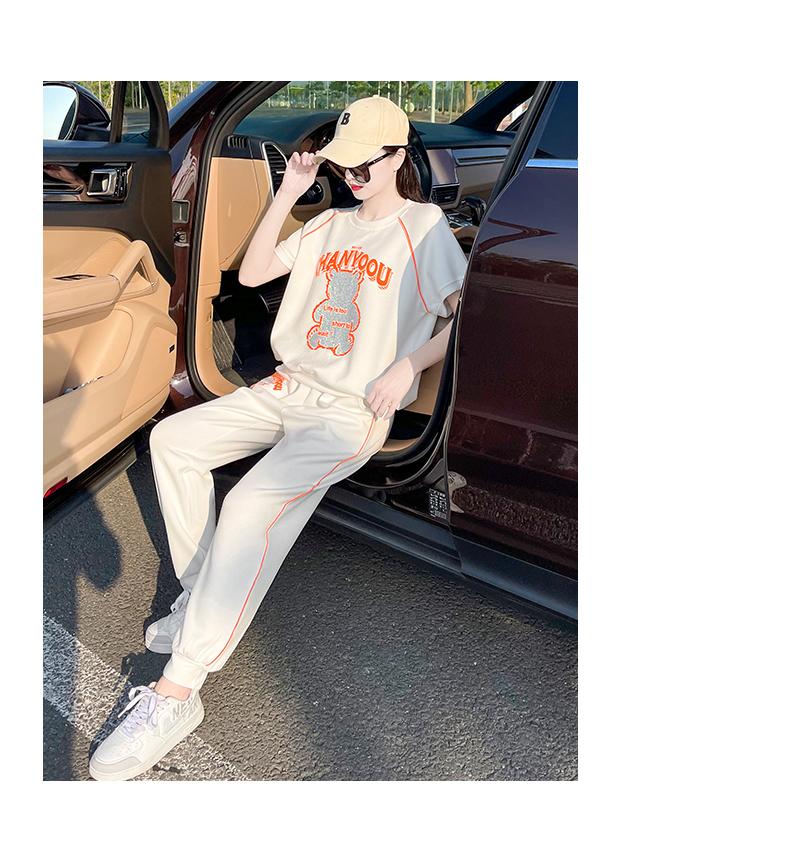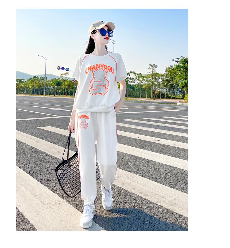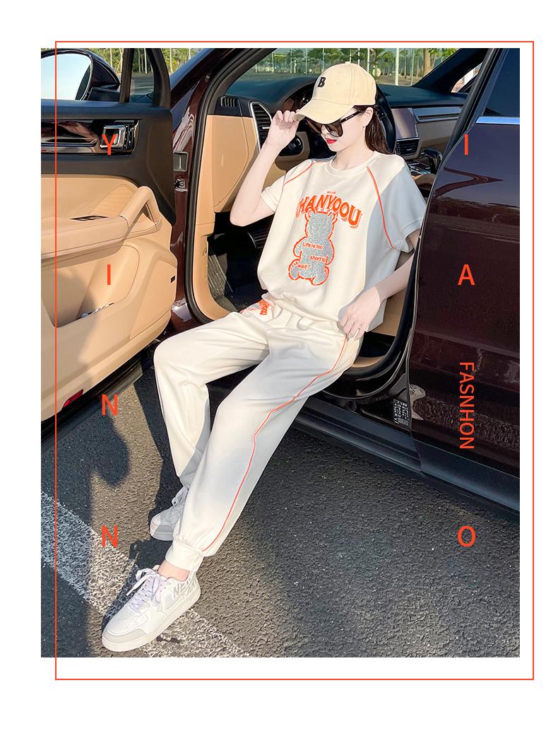 Terno Fried Street feminino verão 2022 novo urso fofo antienvelhecimento lazer moda rede vermelha esportes duas peças estilo ocidental