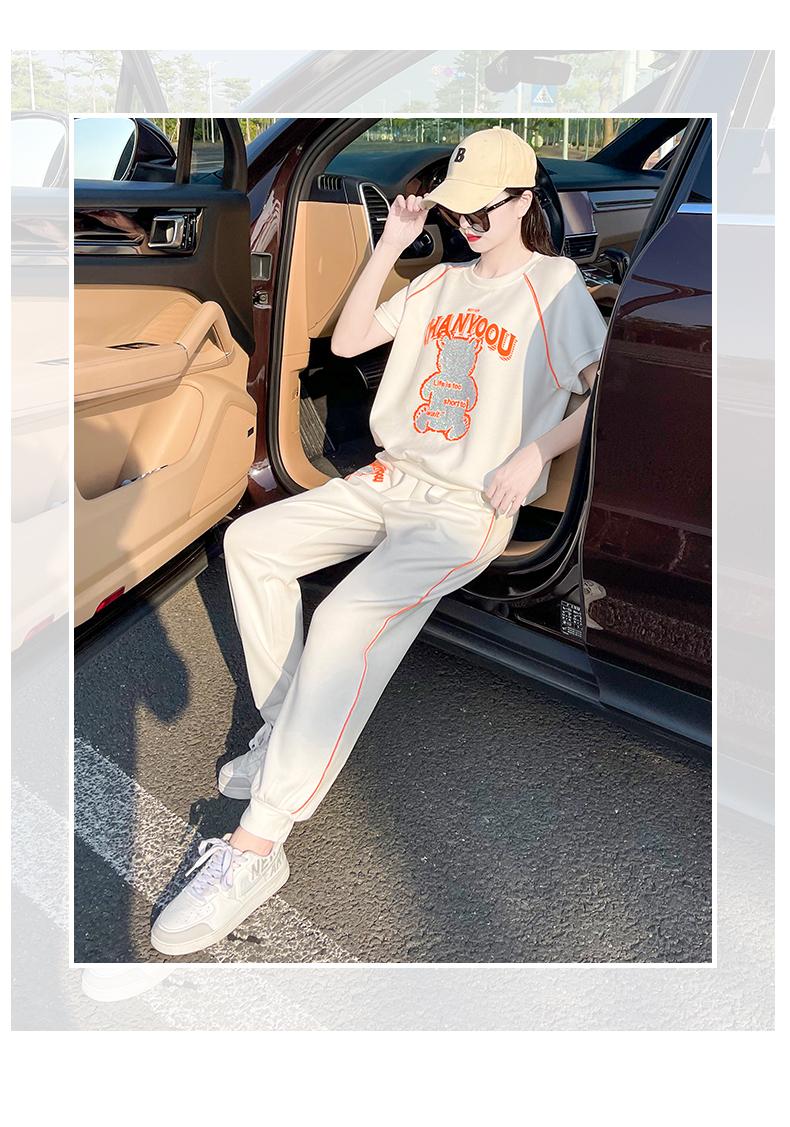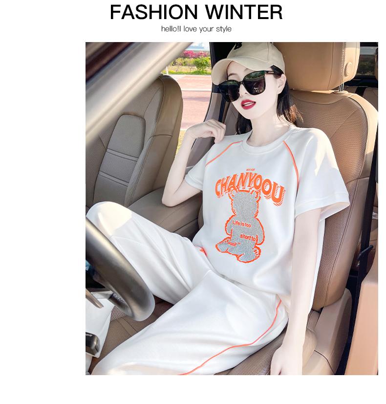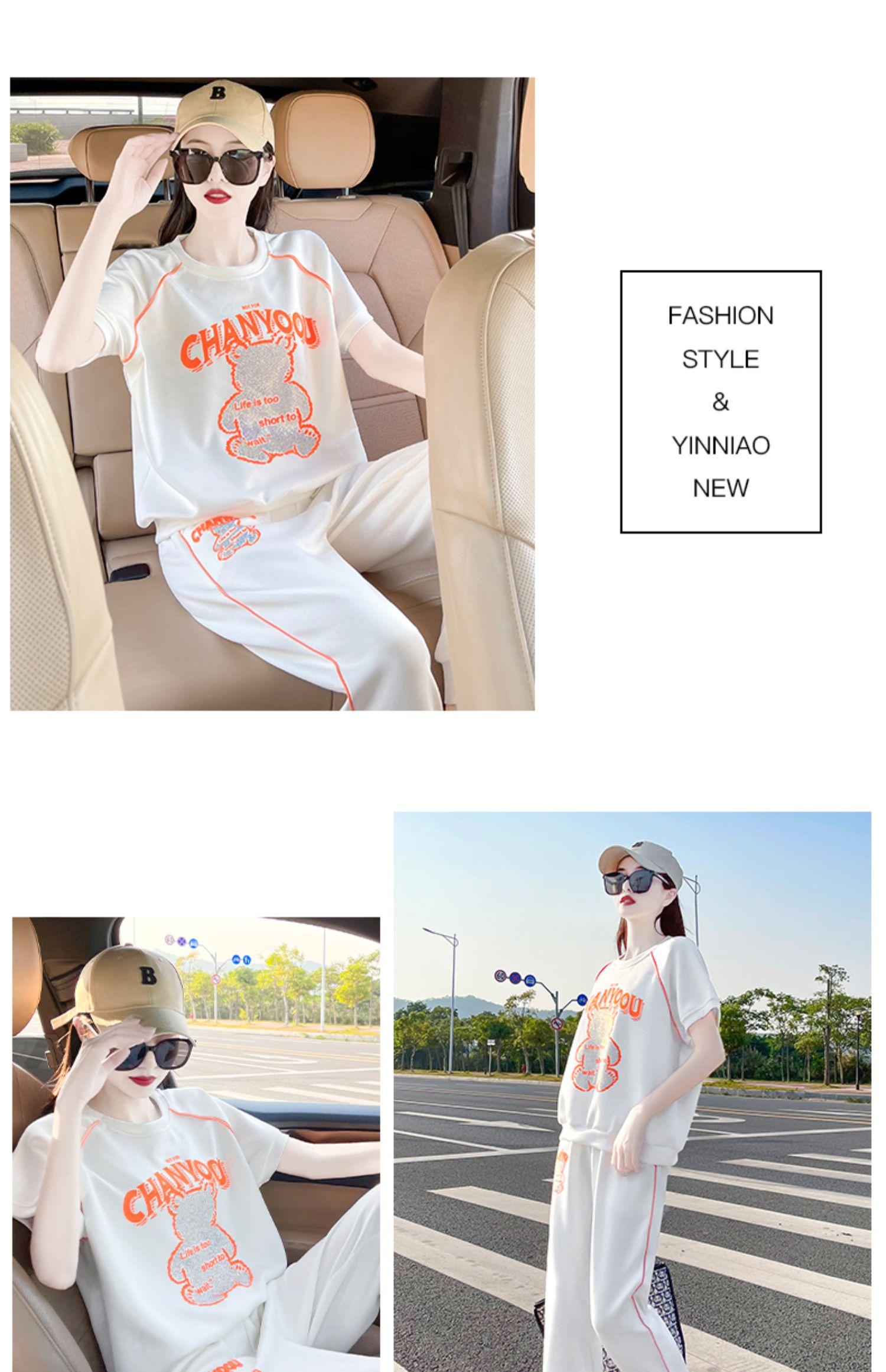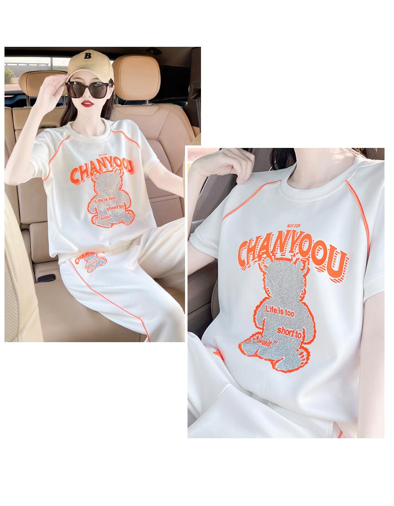 Terno Fried Street feminino verão 2022 novo urso fofo antienvelhecimento lazer moda rede vermelha esportes duas peças estilo ocidental