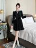 Vestido Longo de Veludo Preto Estilo Hepburn para Mulheres, Temporada de Primavera, Estilo Rica, Vestido Sofisticado de Corte A 40628