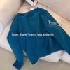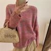 Terno de suéter da moda deste ano, novo suéter feminino solto com decote em V, versátil e redutor de idade
