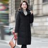 Casaco de penas grosso e quente para mulheres de meia-idade e idosas, roupas acolchoadas de algodão para mães de meia-idade de 50 anos, casaco de penas de pato branco de comprimento médio para inverno