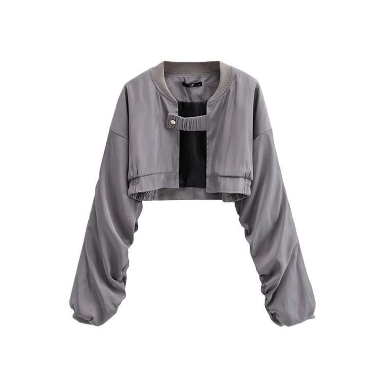Estilo americano Fried Street Hot Girl Loose Long-manga Cardigan Top Feminino Design Plissado Super Curto Casaco Casaco