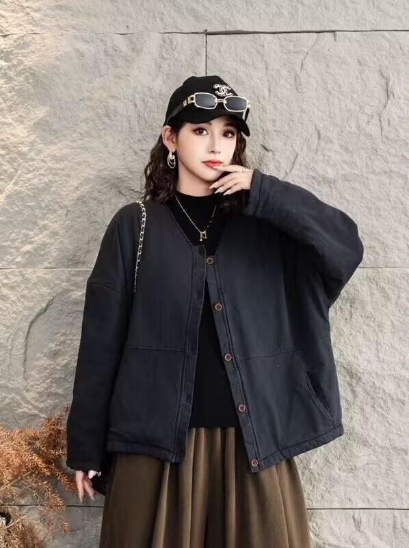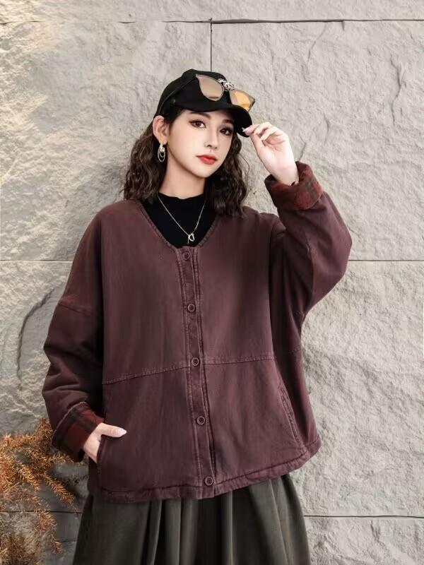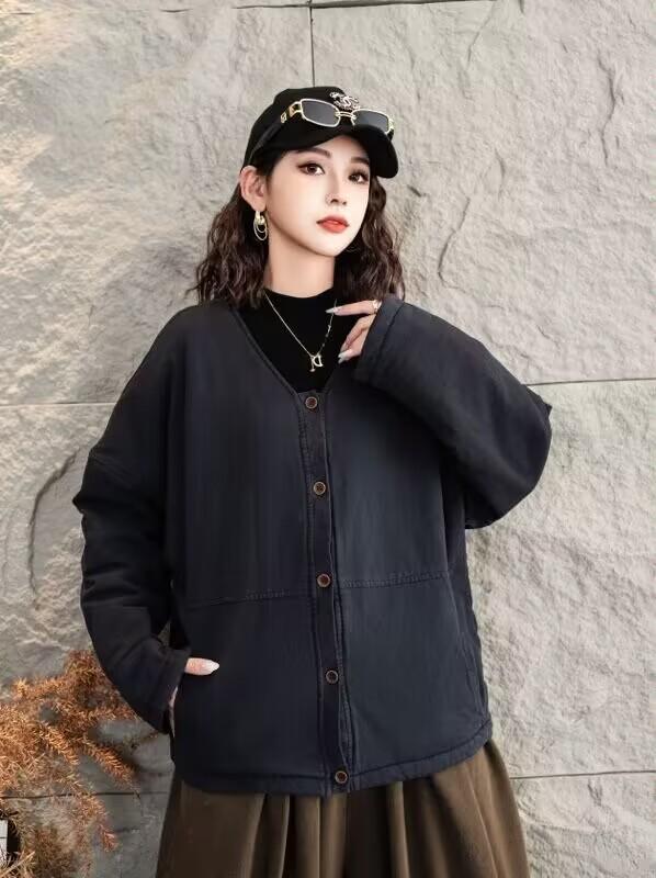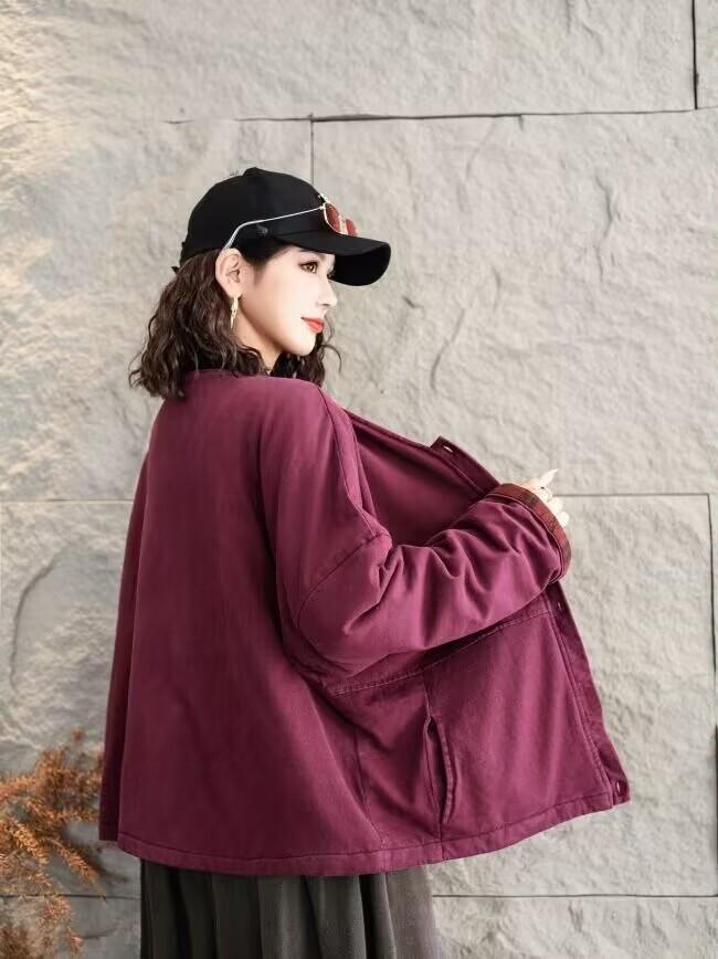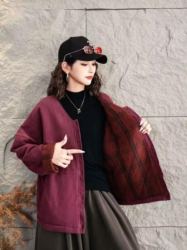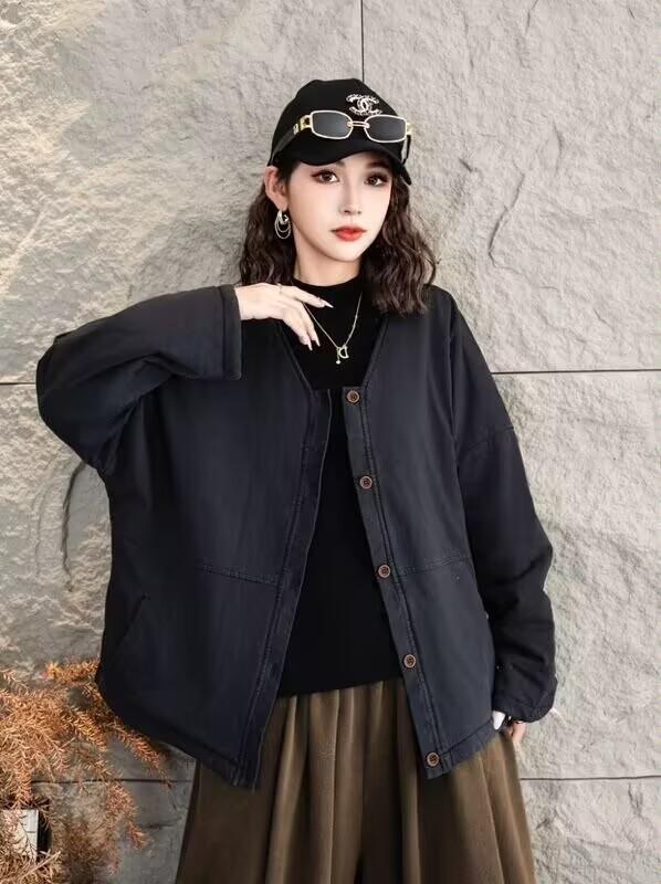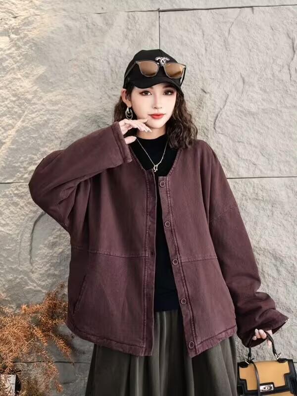 Jaqueta acolchoada de algodão frito feminina inverno 2024 nova retrô literária solta plus size casaco quente jaqueta 8827