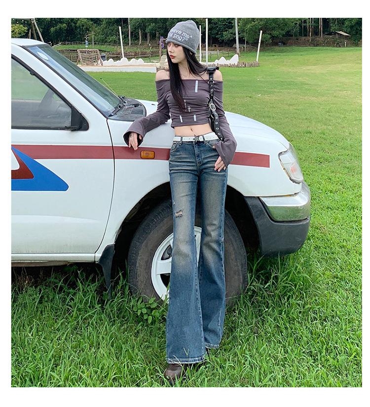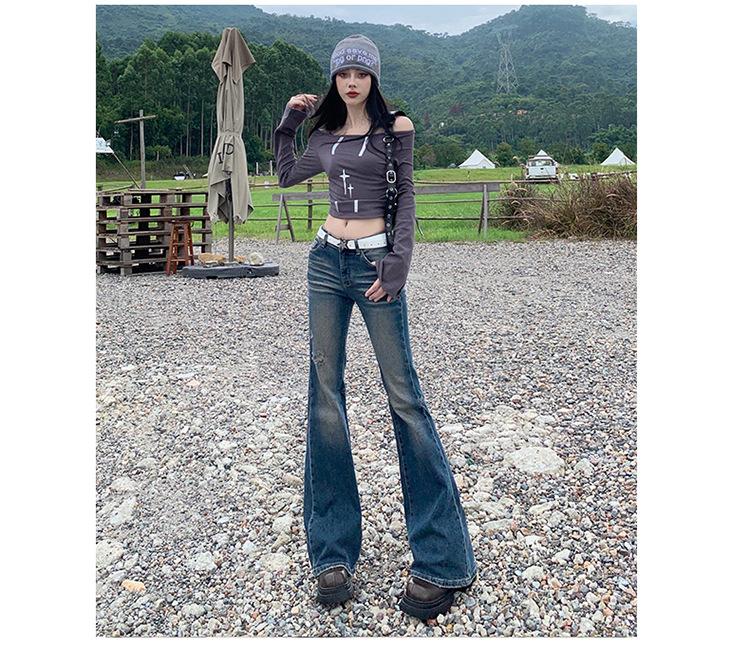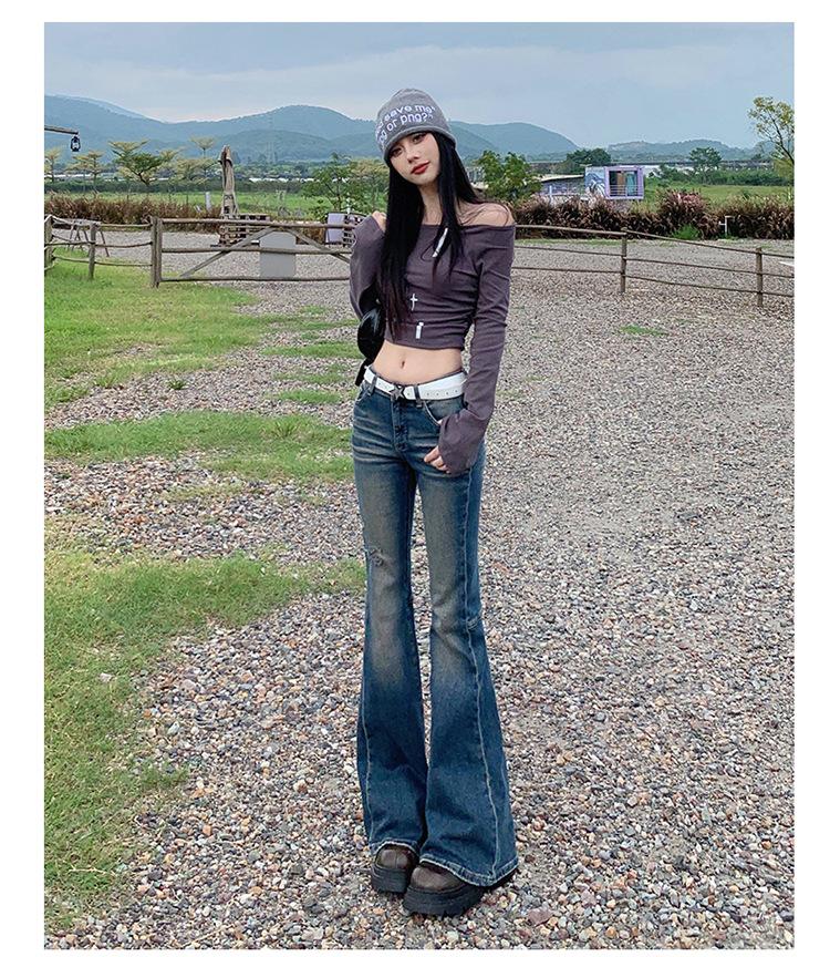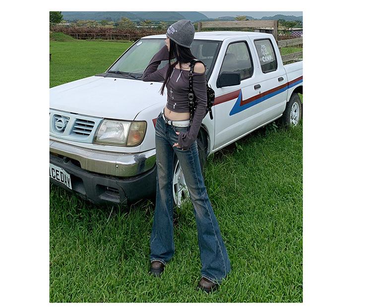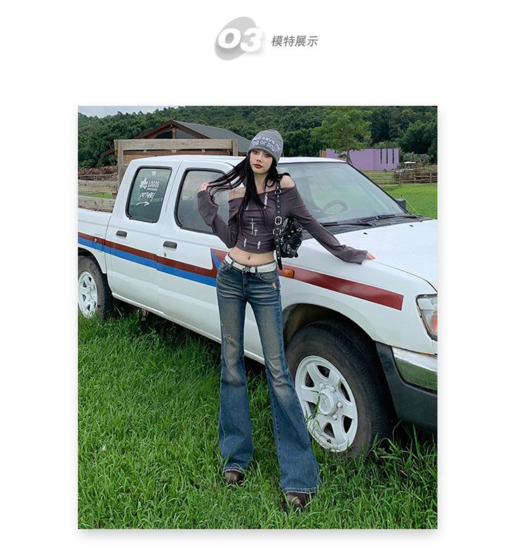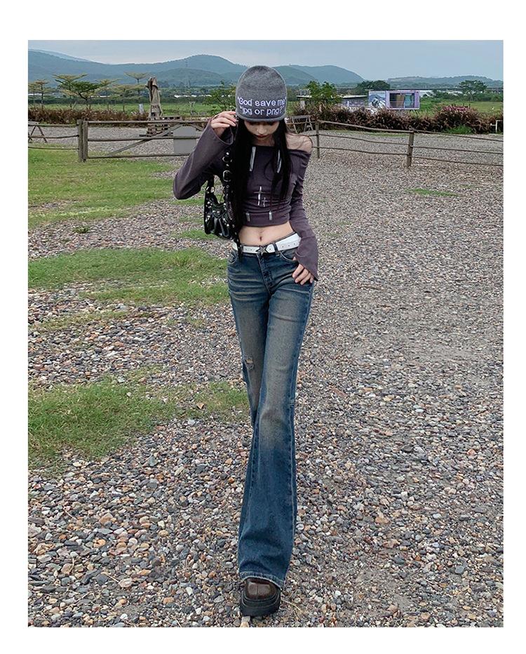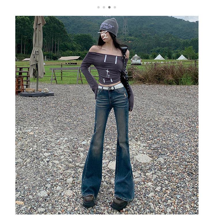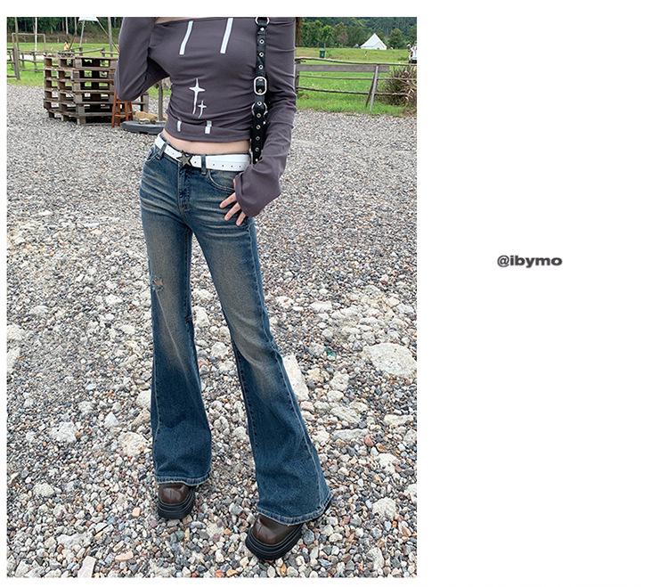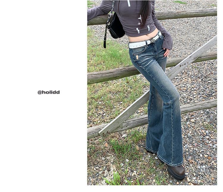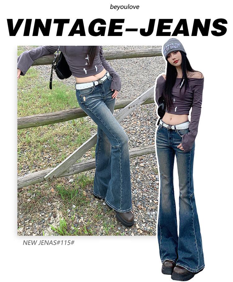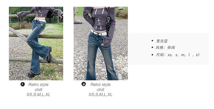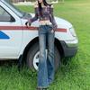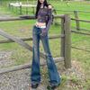 Estilo americano Spice Girl Retro Wear Calças de cintura baixa alargadas femininas 2024 Outono Novo Stretch Slim Look Bottom Jeans