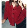 Compre Cardigan Tricotado de Lã 100% para Mulheres Outono e Inverno Gola Redonda Espessado Curto Suéter Vermelho Ano Novo Suéter Solto Jaqueta Tricotada no atacado no Joom.pro