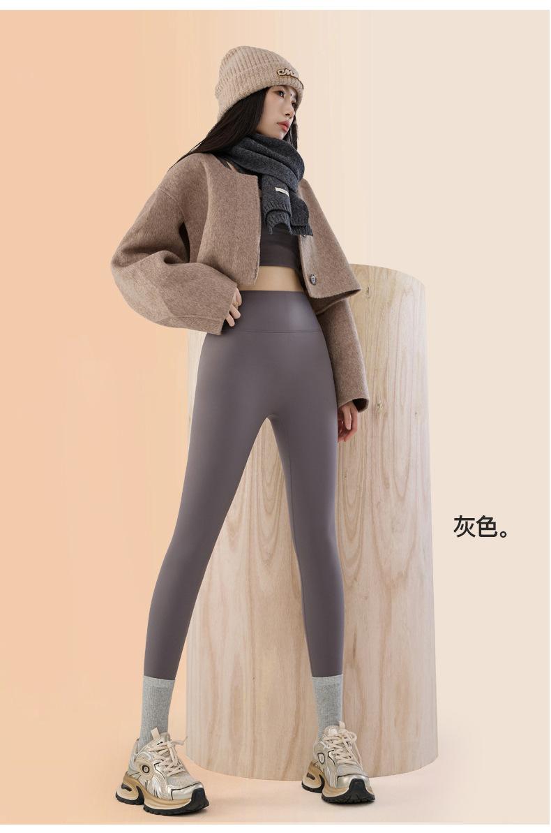 Calças Leves de Plástico de Tubarão para Mulheres, Tamanho Grande, Calças de Yoga de Cintura Alta com Controle de Barriga que Não Apertam, Leggings Quentes de Veludo Justas para Outono e Inverno