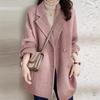 Novo Casaco de Lã Rosa Outono/Inverno 2026 para Mulheres Baixas, Jaqueta de Lã Estilo Coreano de Comprimento Médio, Elegante e Casual