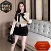 Suéter feminino elegante estilo Chanel, estilo francês, outono e inverno, exclusivo, chique, torção curta, cardigan de malha, casaco, top