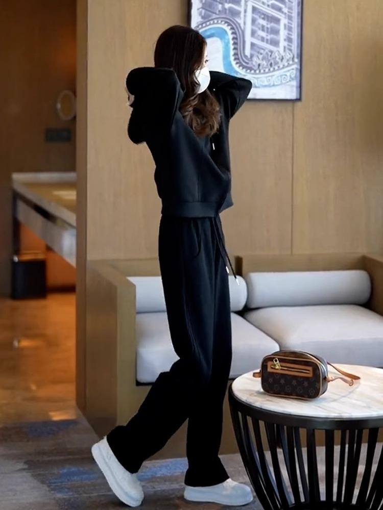 Estilo Primavera e Outono Estilo Ocidental Veludo Conjunto de Suéter Espesso Feminino 2023 Novo Slim Moderno Moda Conjunto de Duas Peças