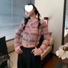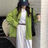 Royal Blue Bright Eye Wear 2024 Dongdaemun Início da Primavera Top Lazy Velvet Doodle Malha Botão Cardigan para Mulheres