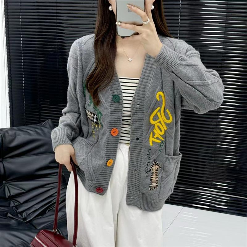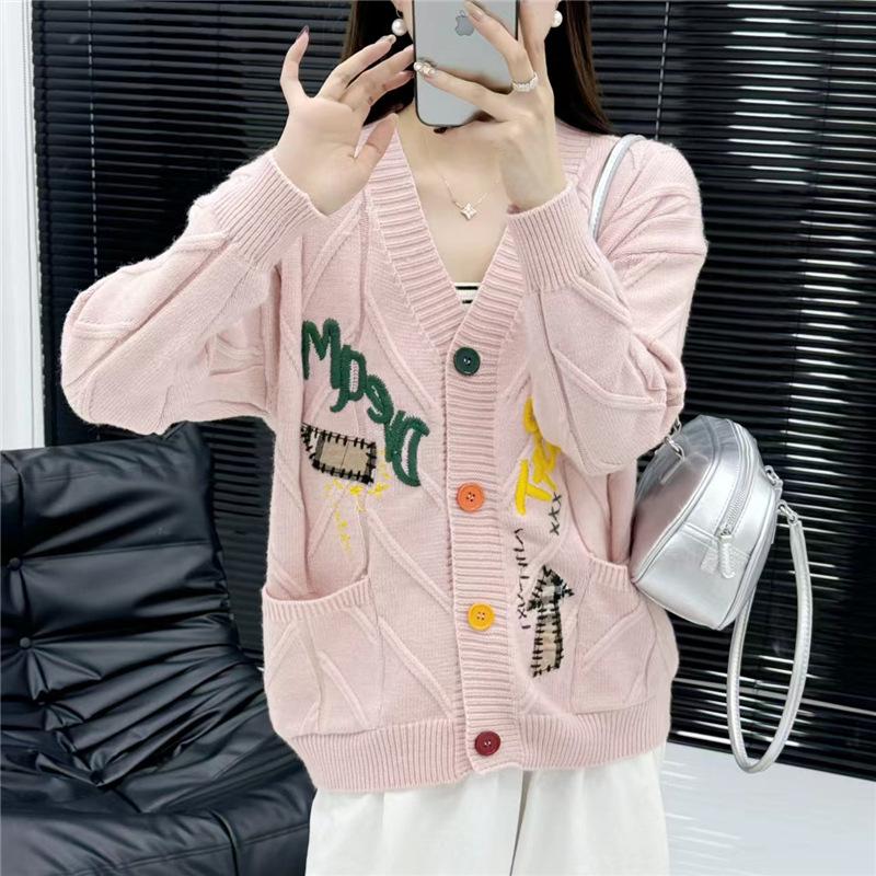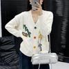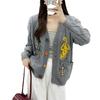 2025 Primavera e Outono Novo Estilo Coreano Novo Estilo Preguiçoso Suéter Cardigã Jaqueta Feminina Solto Curto Top de Tricô