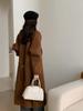 Jaqueta Suéter de Comprimento Médio Acima do Joelho Estilo Preguiçoso Solto com Alças para Mulheres 2025 Outono e Inverno Novo Cardigã Tricotado Elegante