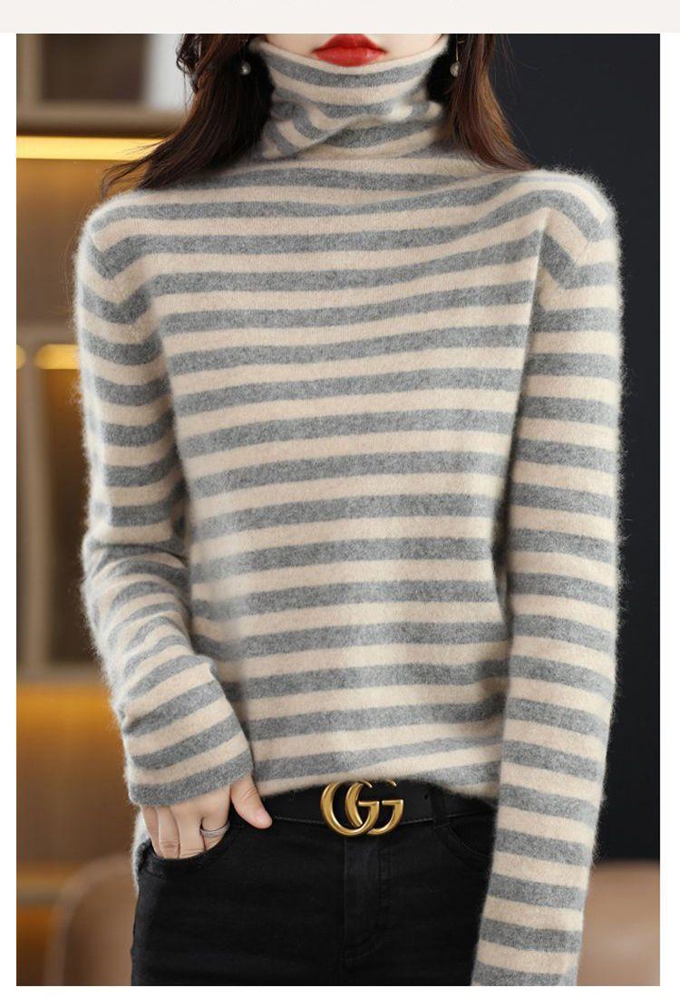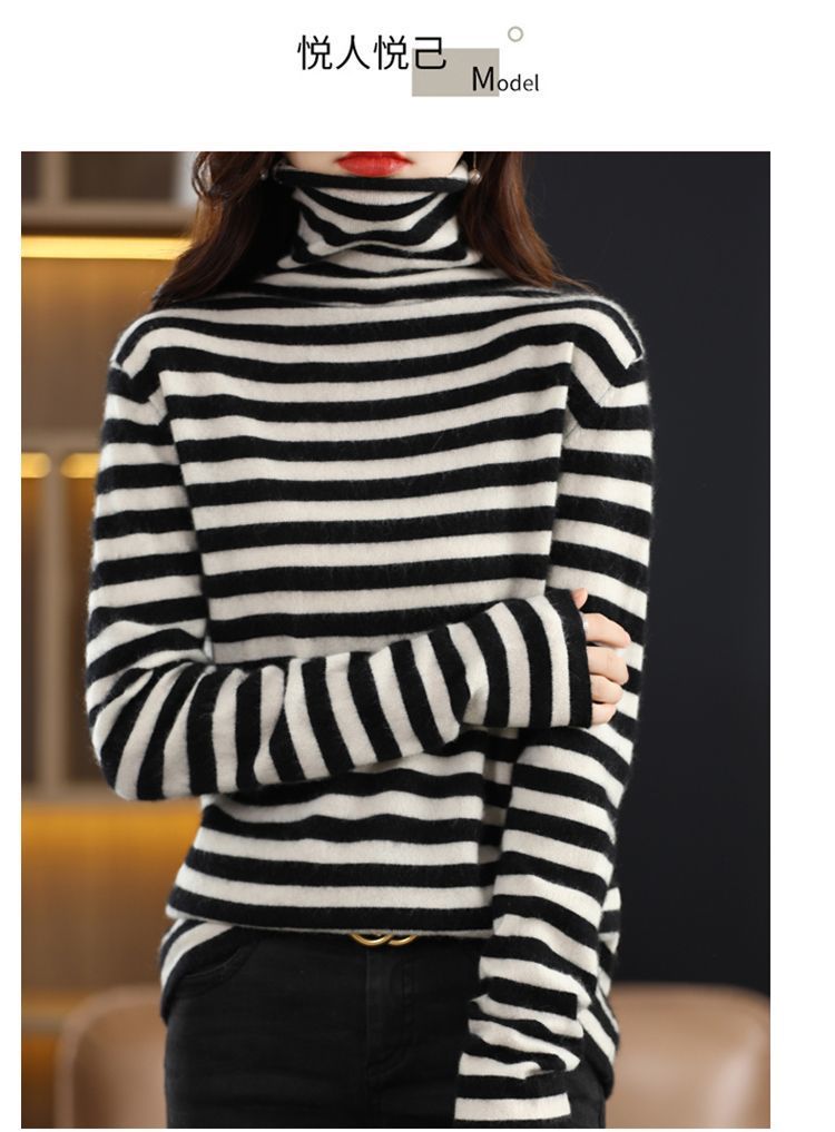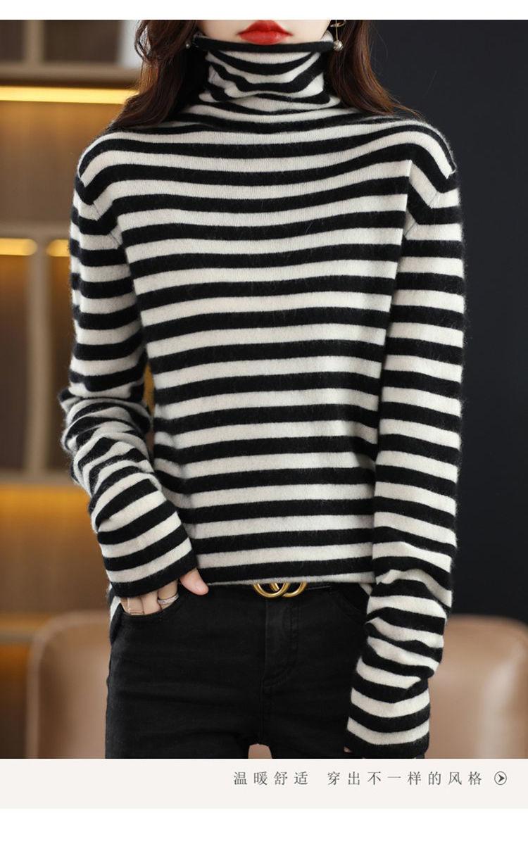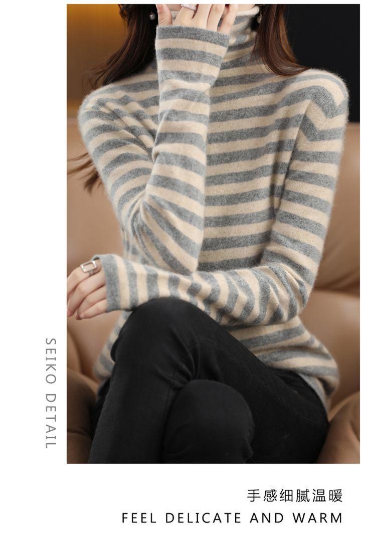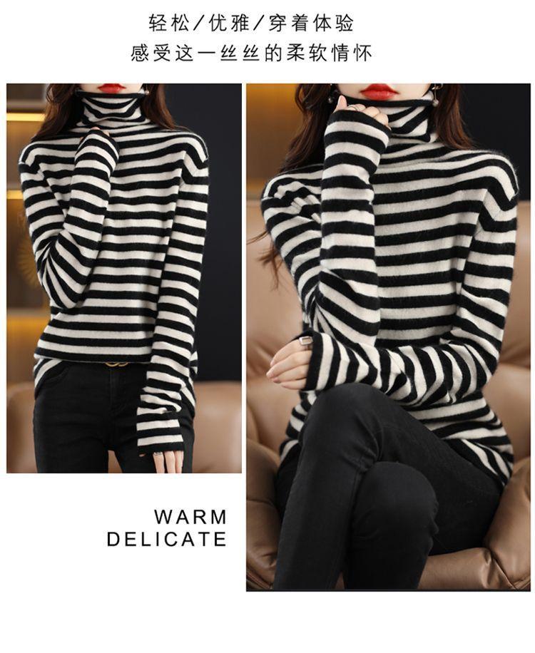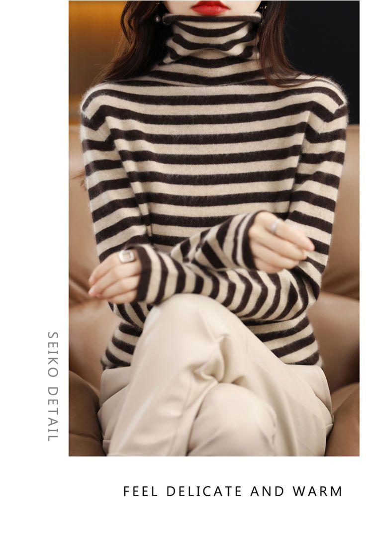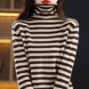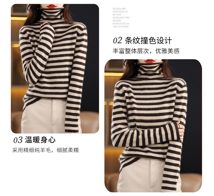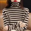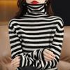 Suéter listrado com gola empilhada feminino outono e inverno novo suéter de base interna de estilo estrangeiro de alta qualidade blusa de gola alta espessada