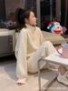 Terno esportivo casual de alta qualidade feminino primavera e outono estilo ocidental conjunto de duas peças com gola alta e calças de cintura alta