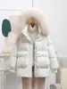 2025 Inverno Novo Jaqueta de Penas Feminina Média Coreana Moda Espessada Penas de Pato Branco Tamanho Pequeno Casaco com Gola de Pele Grande