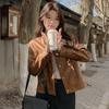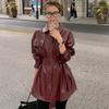 Cinto de ombro estilo antigo Qian outono/inverno lapela manga comprida padrão de crocodilo couro PU cinto cintura justa francês casaco de alta qualidade feminino