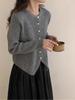 Cardigan de malha com gola redonda feminino estilo coreano outono elegante irregular novo 2024 slim-fit emagrecimento macio suéter encerado jaqueta