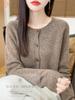 Outono e inverno novo 100% lã pura cardigan feminino gola redonda cor sólida solto base de malha top casaco de cashmere suéter