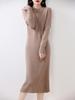 Vestido de malha com gola meia alta para mulheres, outono e inverno, 100 lã, longo, slim fit, vestido, base na altura do joelho, roupa externa