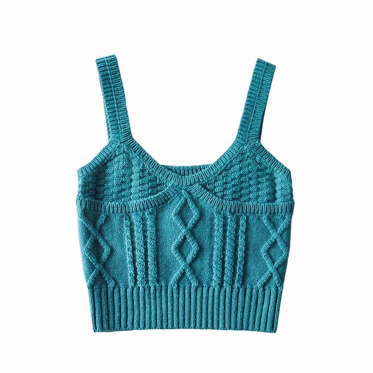 Camisola curta de malha com decote em V retrô francesa feminina cor sólida elástica slim twist top