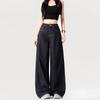 Jeans estilo americano azul escuro perna larga feminino tubo reto solto primavera e outono nova cintura alta emagrecimento retro calças largas