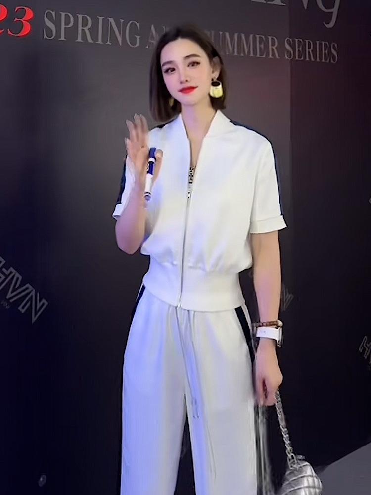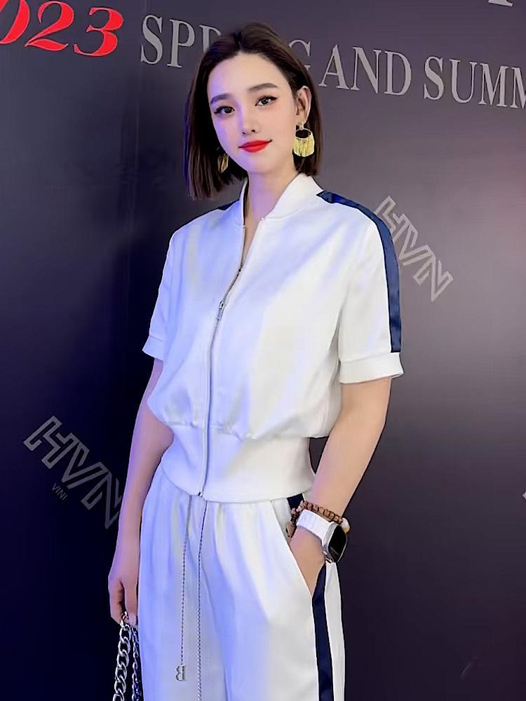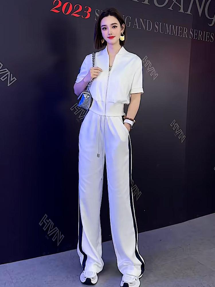 Conjunto de Duas Peças Casual Simples da Moda no Mesmo Estilo de Celebridade da Internet com Cardigã de Zíper de Linha Contrastante de Manga Curta para Mulheres