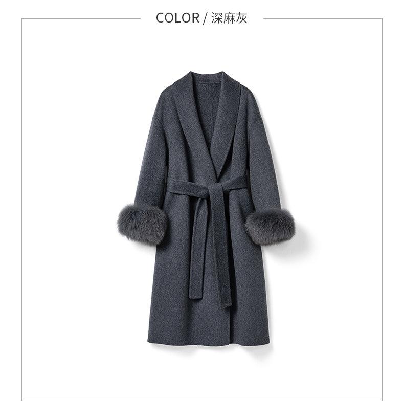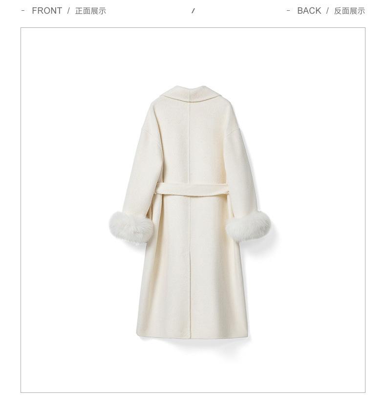 2024 outono e inverno lã de alpaca dupla face tweed casaco com cadarço pele de raposa casaco destacável temperamento caro em estoque