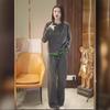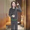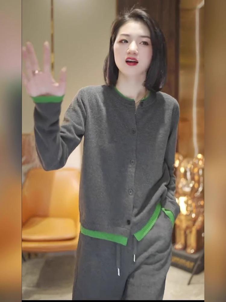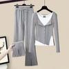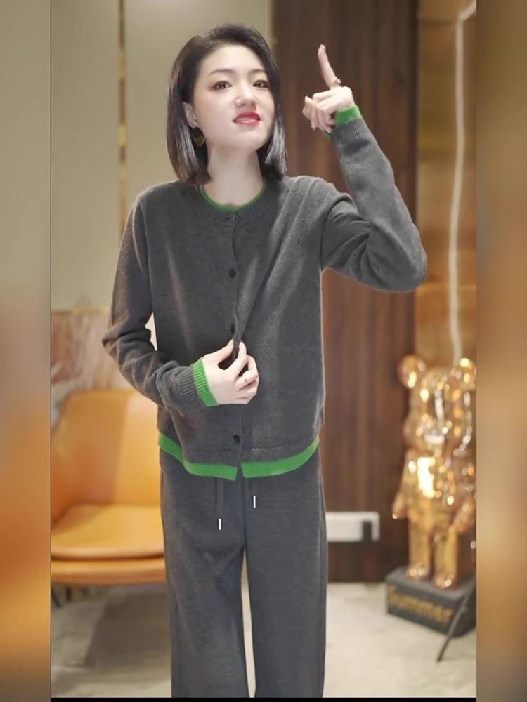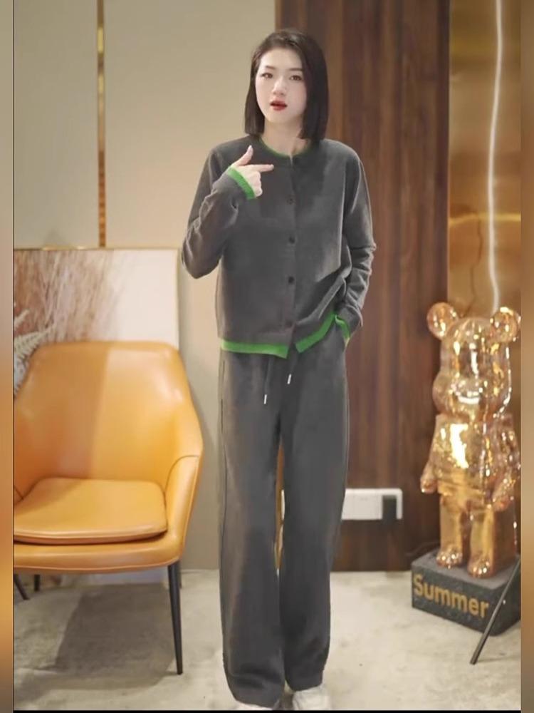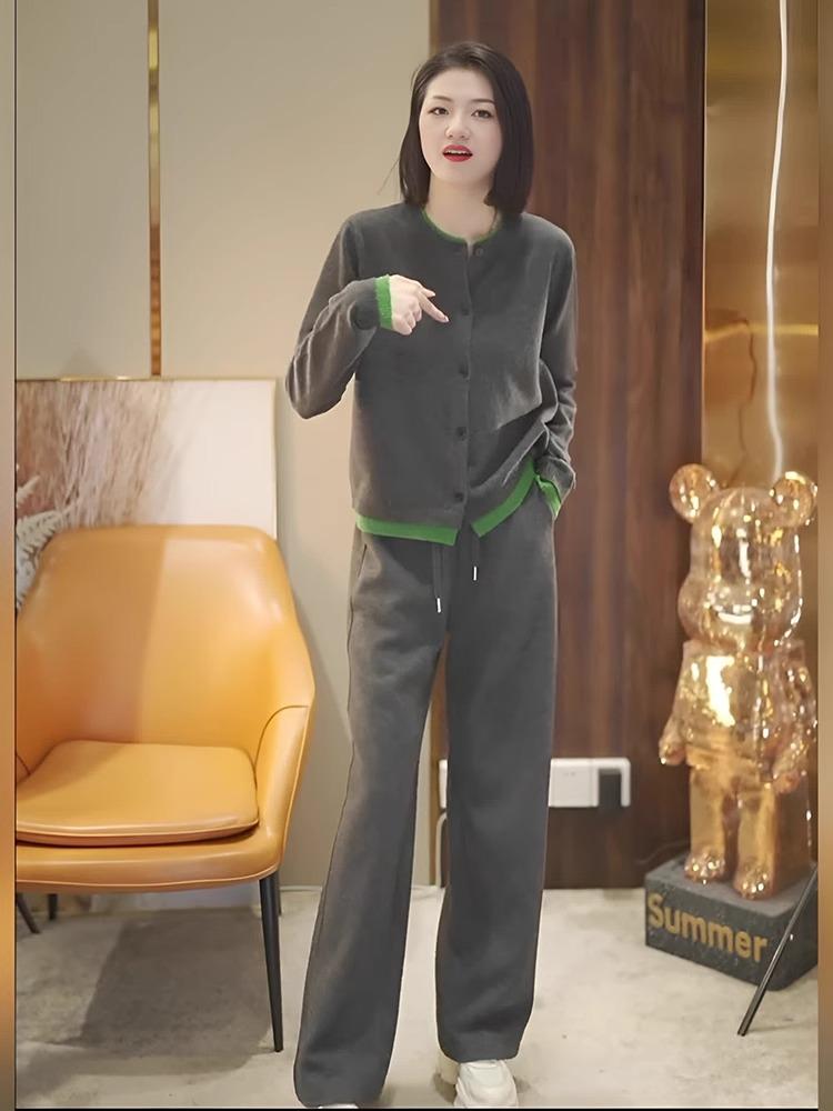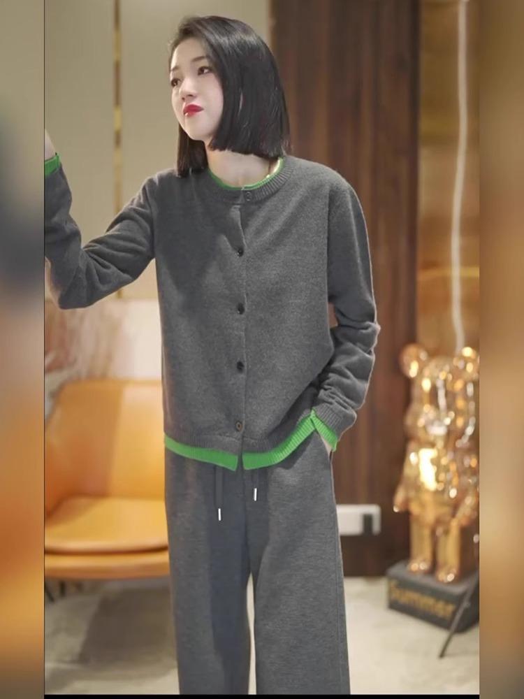 Conjunto Esportivo da Moda Primavera Novo Cardigan com Botões Falso Duas Peças Solto Manga Longa Conjunto de Duas Peças para Mulheres
