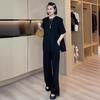 Celebridade da Internet Doce Legal Moda Esportes Estilo terno Verão Novo Idade-reduzindo Preto Gola Redonda Dividir Manga Curta Duas Peças Roupas Femininas